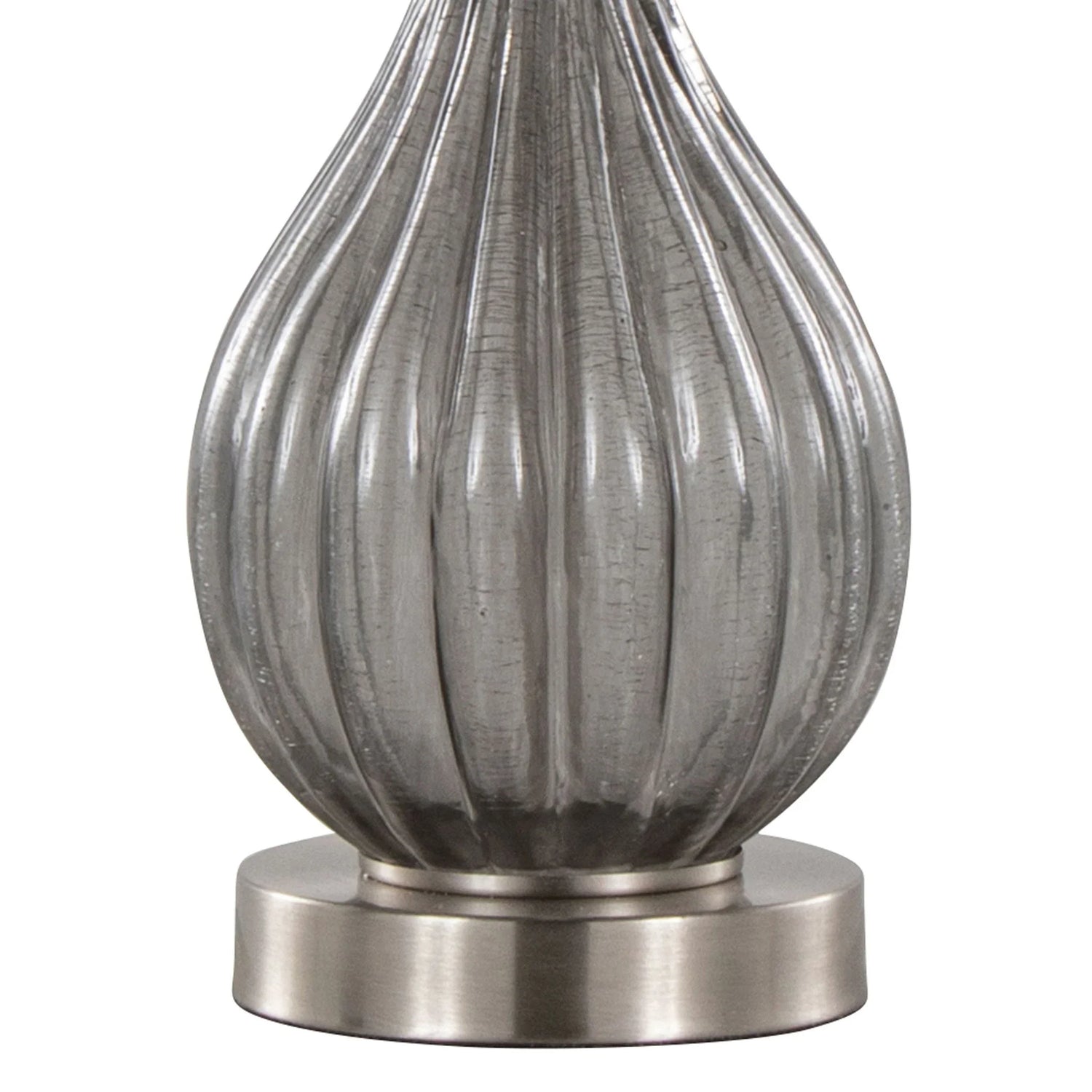 Day to day these lamps function as stylish workhorses: the slender neck and teardrop base keep the profile refined while the textured crackle glass catches light for subtle shimmer. Metal accents and a classic white linen shade keep the palette versatile so the lamps integrate easily with coastal, transitional, or contemporary interiors. Sold as a coordinated set of two for balanced lighting on twin nightstands or flanking a sofa.