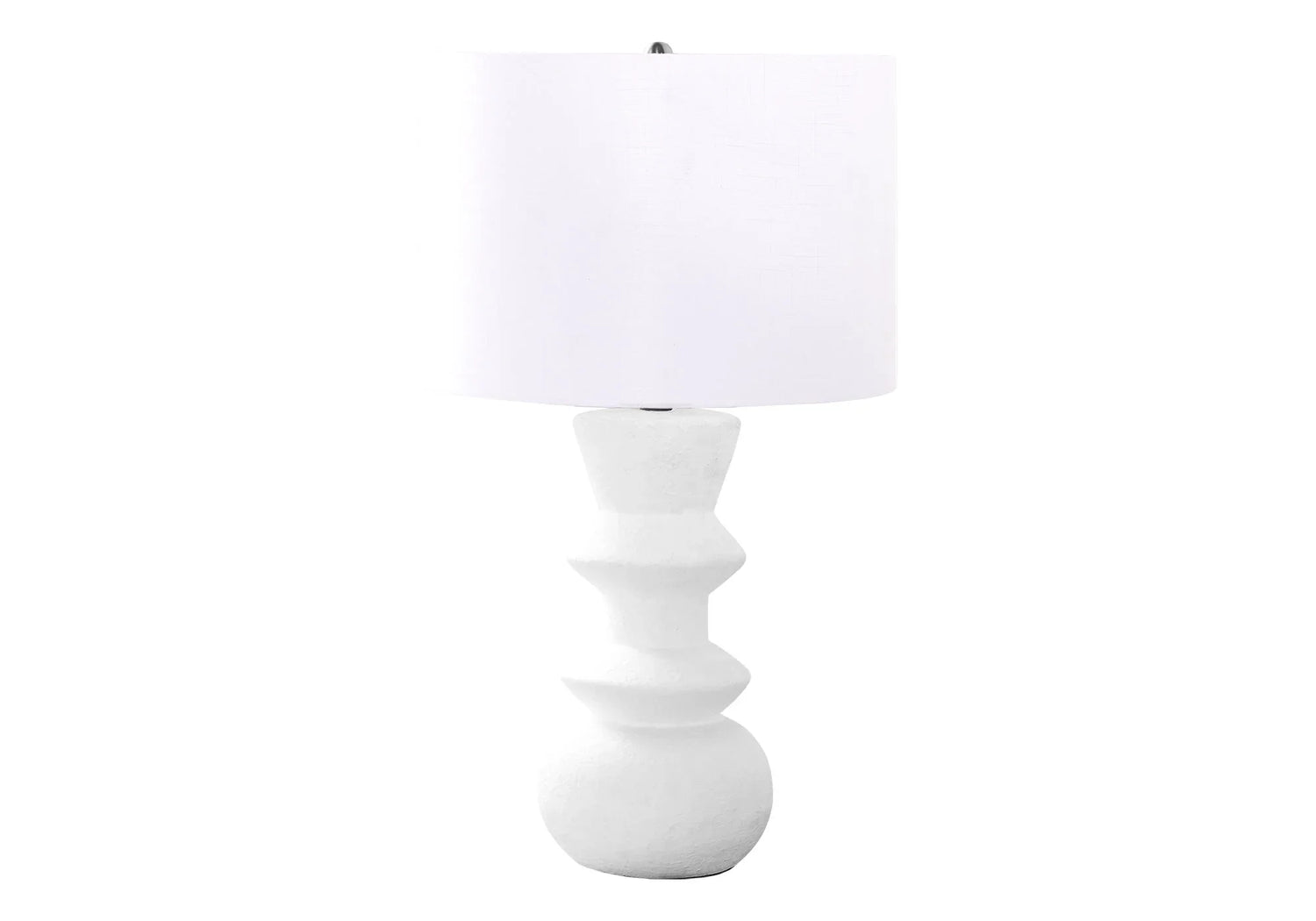 The lamp pairs a textured ceramic geometric base with an elegant ivory fabric drum shade for a refined, tactile look. Lightweight to move and sold individually, it includes an adjustable light feature so you can tailor the glow for reading or softer mood lighting. Assembly is required, and the simple setup keeps it approachable for everyday use.