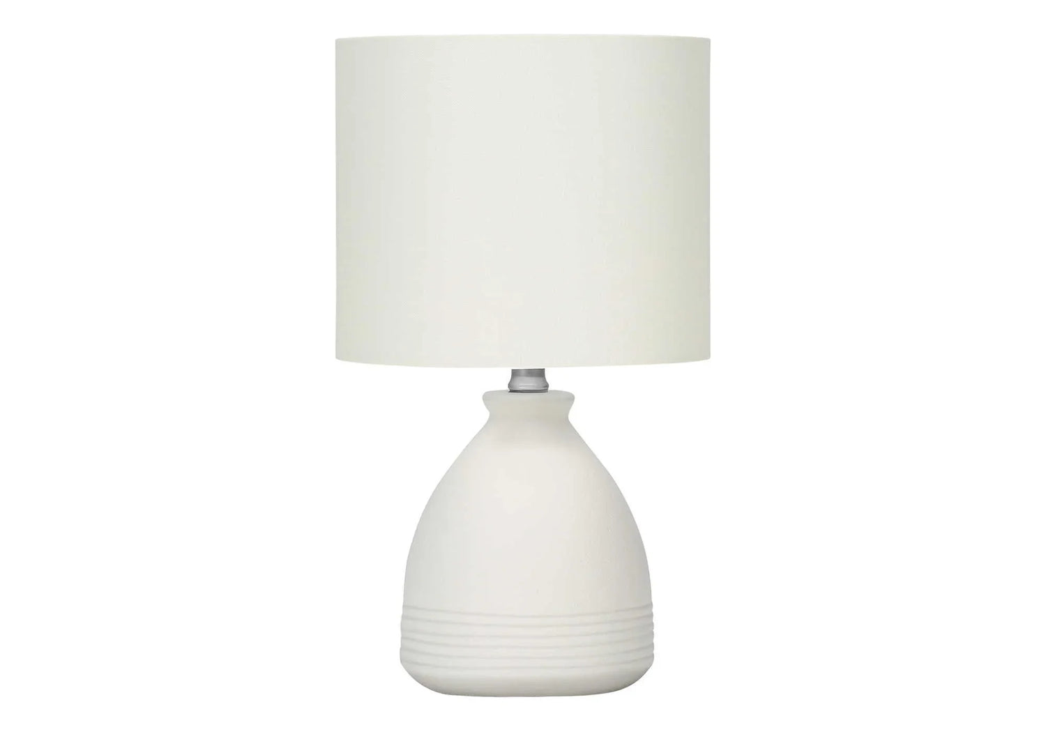Compact and casually refined, this cream ceramic table lamp is made for bedside tables, entry consoles, or a reading nook where warm, diffused light and subtle texture matter. The modern beehive‑shaped base with horizontal groove lines reads contemporary but quiet — a practical accent for modern, coastal, or transitional interiors that need a soft, sculptural touch.