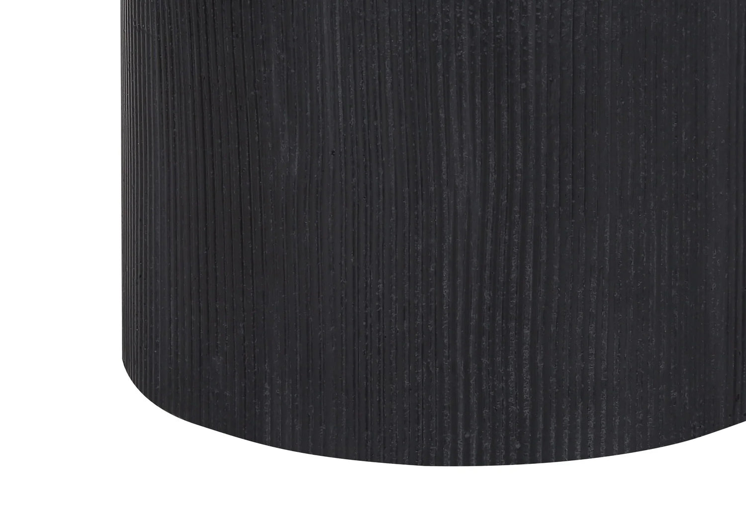 - Base: Ribbed black concrete cylinder with matte texture and gold metal top accent.