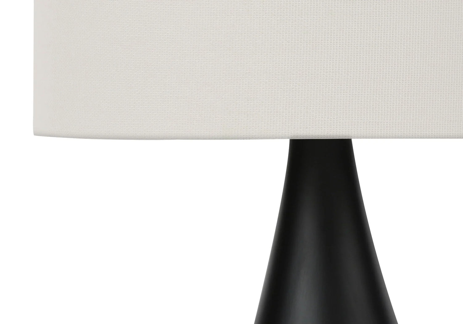 - Base: Black metal teardrop base with a smooth, low-sheen finish.