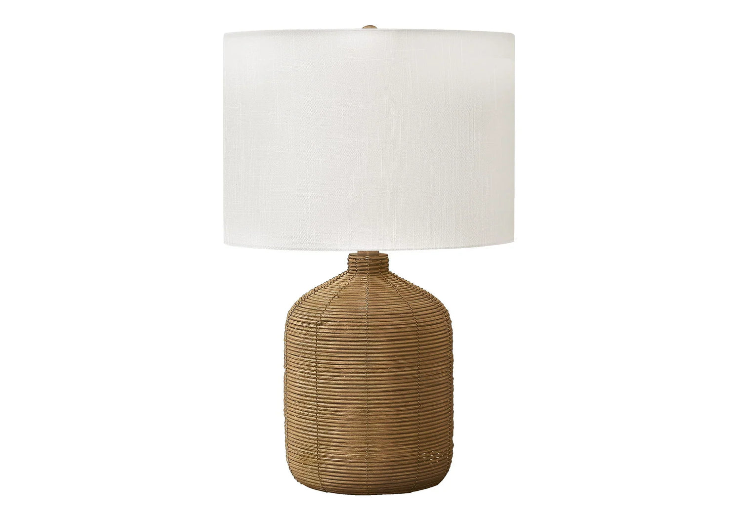 This rattan table lamp is for anyone who wants warm, natural texture with a clean modern silhouette — perfect on a living room side table, bedroom nightstand, or entry console. The 23" (58.4 cm) profile gives useful task and ambient light without overwhelming a tabletop, while the woven rattan body on a concealed metal frame reads crafted and contemporary.
