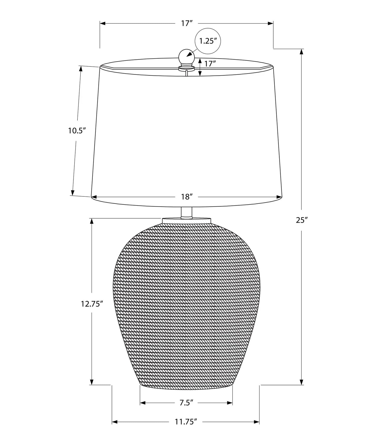- Overall height: 25 in (63.5 cm).
