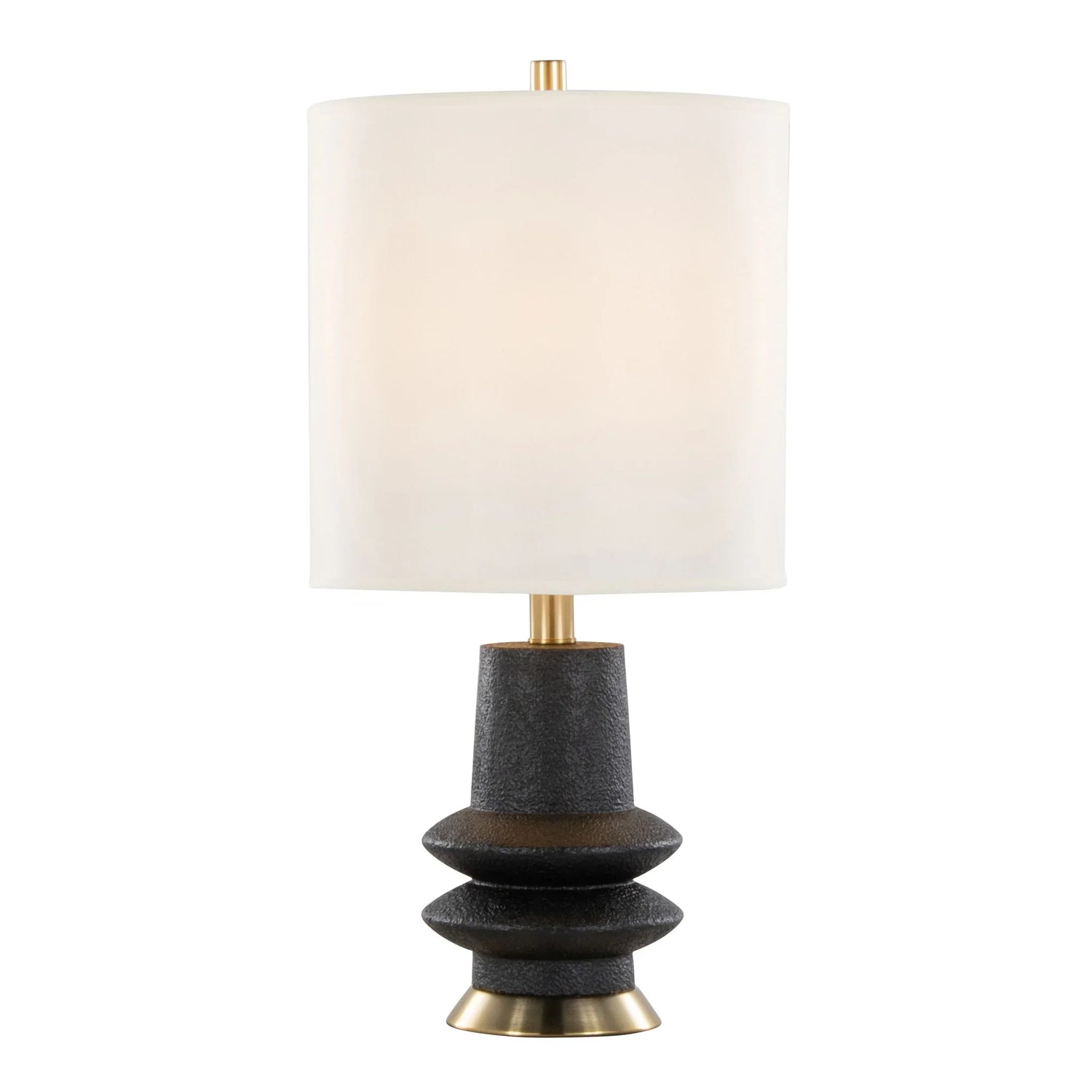The Lloyd table lamp set (2) is made for design-minded homeowners who want a modern, sculptural accent on a bedside table, console, or living room end table. Each lamp pairs a textured, sanded matte polyresin base with warm modern-brass details and a soft linen drum shade to deliver layered, everyday lighting that reads contemporary without feeling cold.