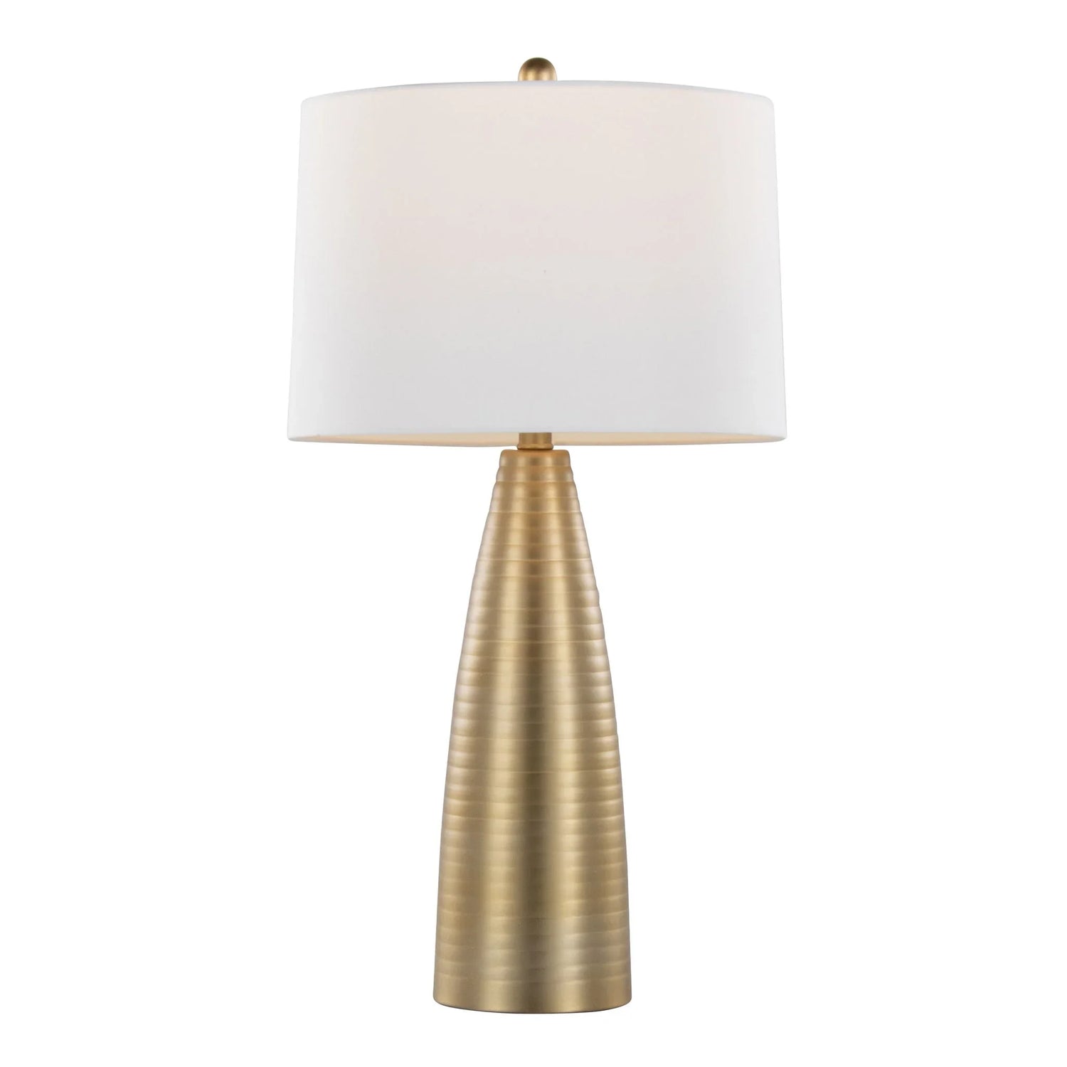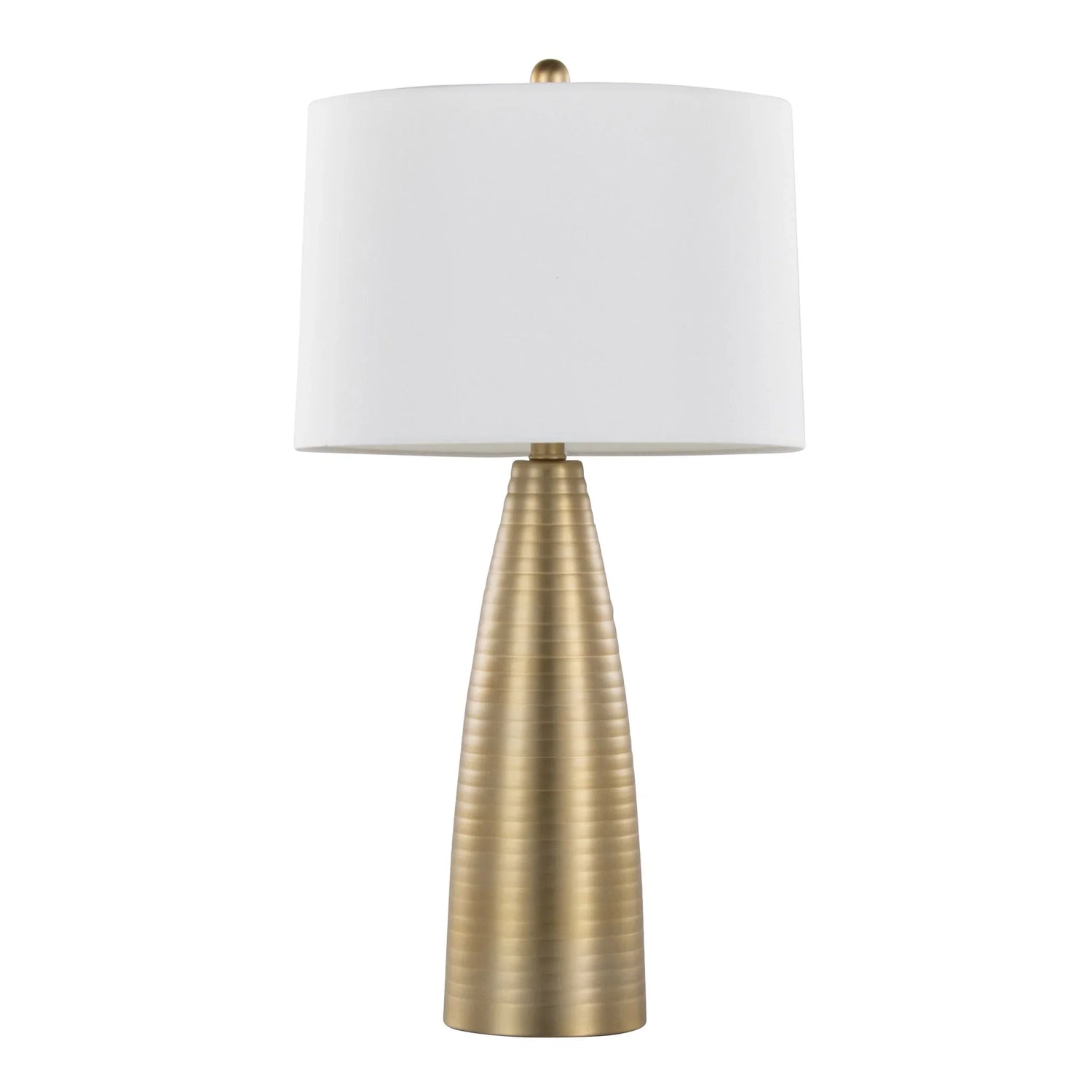 - Finish & photography note: Warm gold metal with a soft satin sheen paired with a crisp white linen shade. Natural variations in metal finishing and screen color calibration can cause slight differences in appearance.
