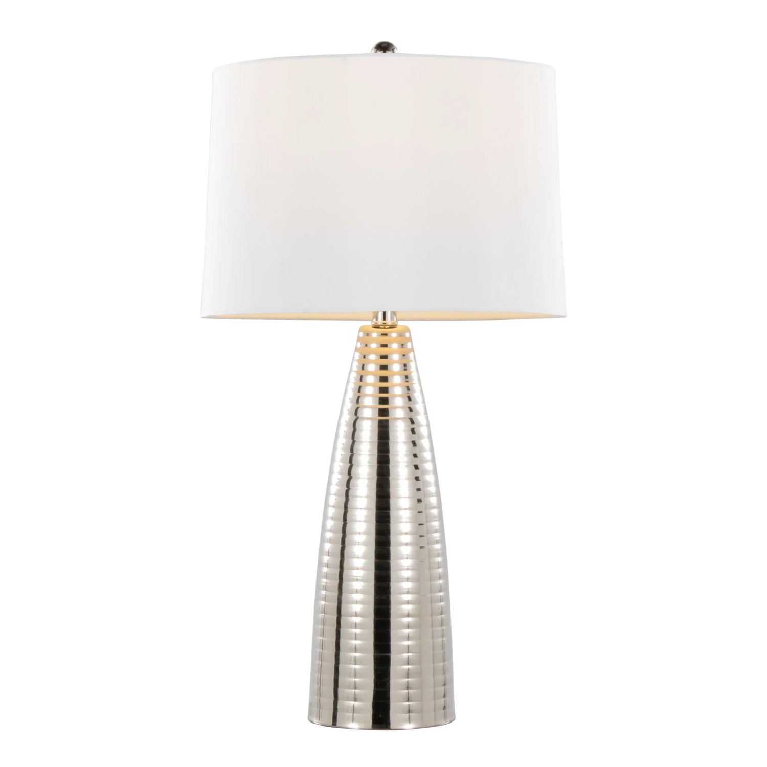 - Shade: White linen tapered drum (provides soft diffusion and a clean profile).