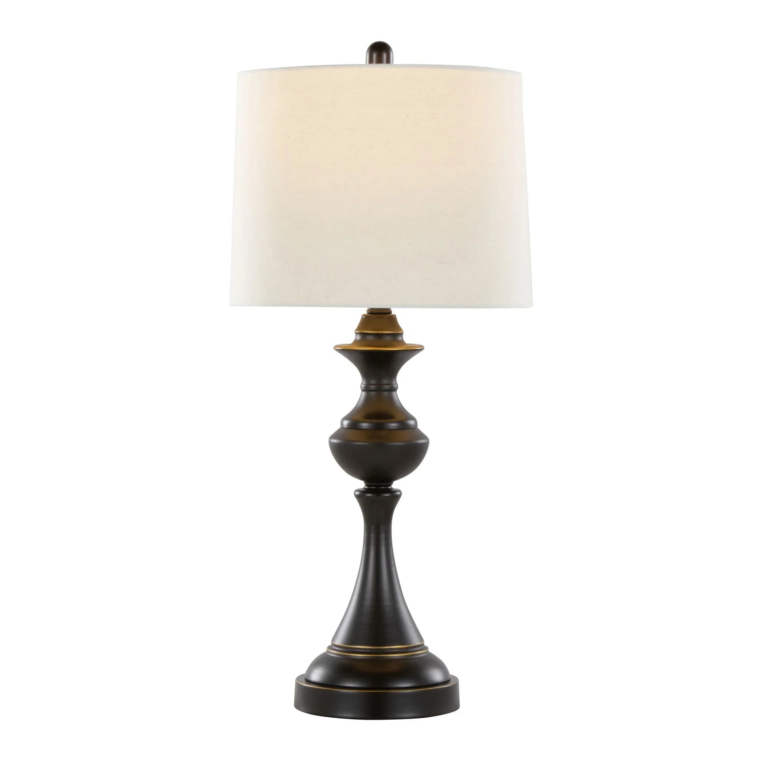 • Finish & color: Dark bronze body with subtle warm‑gold highlights and a white/ivory linen‑style shade. Natural materials and screen settings may cause slight color variation.