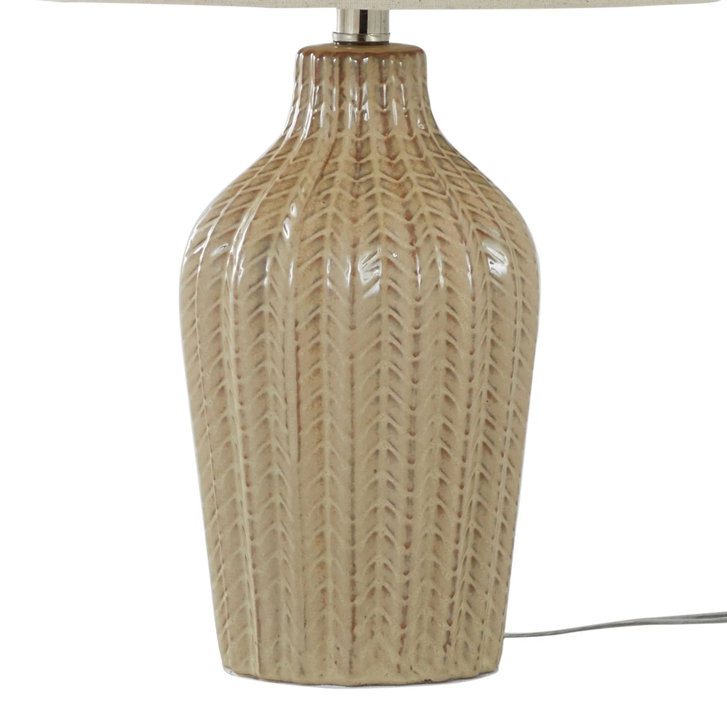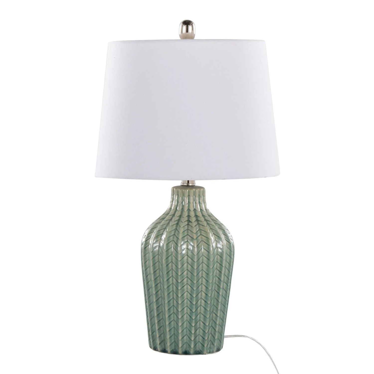 - Stylish Design: The Rockwell Table Lamp features a ceramic body with a glossy chevron pattern and a sleek tapered drum shade, offering a modern aesthetic that adds a pop of color to any room.