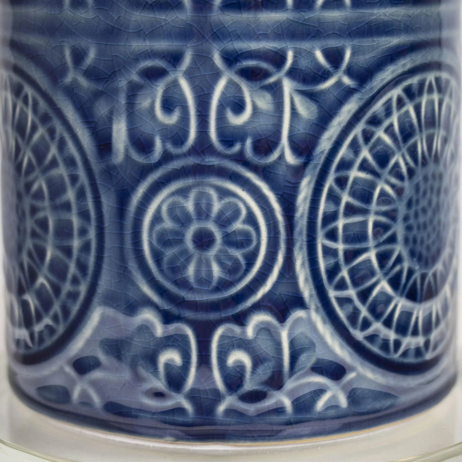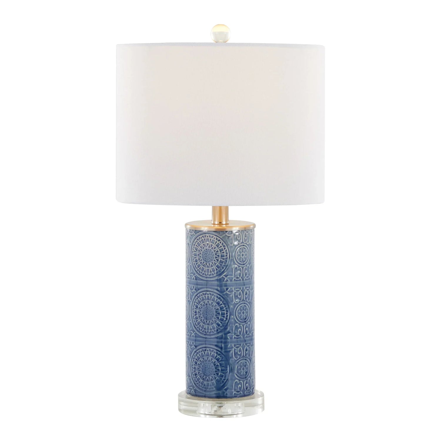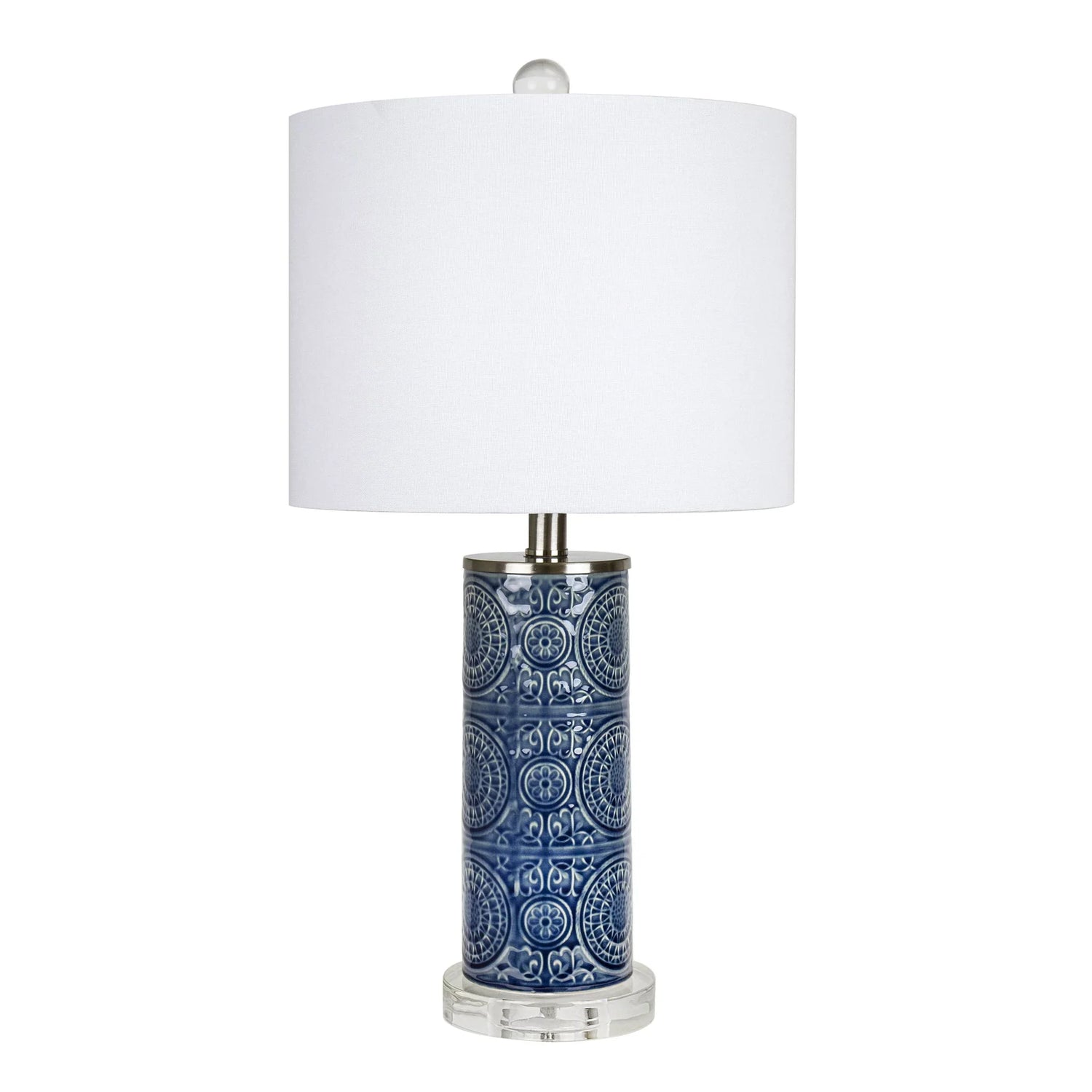 • Stylish Design: The Spyro Table Lamp features a unique cylindrical ceramic body with an embossed design, complemented by a genuine crystal base. Its contemporary style adds an eye-catching element to any room, whether it's a bedroom, living room, or office.