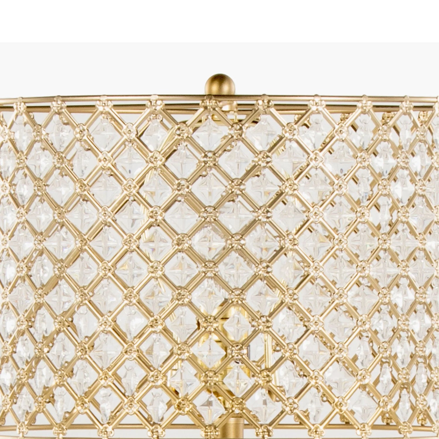 Everyday use is effortless: the lamp’s elegant tiered silhouette and round base create a stable, refined profile while the lattice-style crystalline shade produces a radiant, patterned glow that elevates both task and ambient lighting. Constructed from metal with a warm gold finish, the Topaz balances decorative detail with durable materials for reliable, stylish illumination.