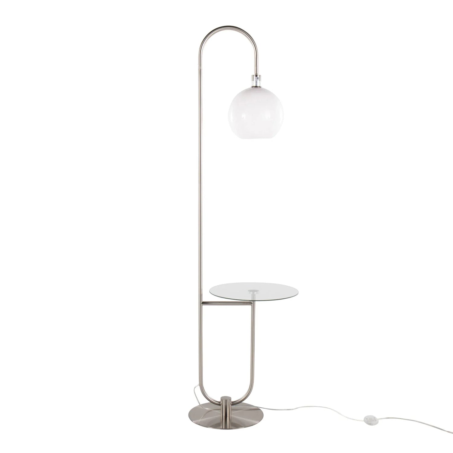 Included: sold individually; floor lamp with integrated round glass shelf (as pictured).
