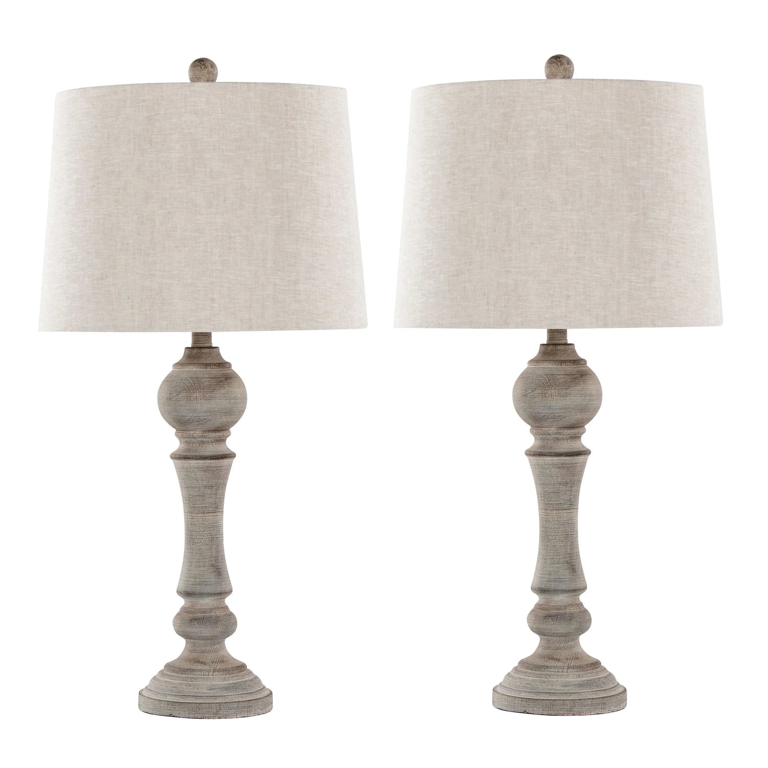 Designed for anyone who loves the relaxed warmth of modern farmhouse style, the Winston table lamp set brings classic turned‑wood lines and soft ambient light to bedside tables, dressers, entry consoles or living room side tables. Each lamp pairs a spindle‑inspired polyresin body with a natural woven linen empire shade for a neutral, reclaimed‑wood look that layers easily with both contemporary and cottage decor.