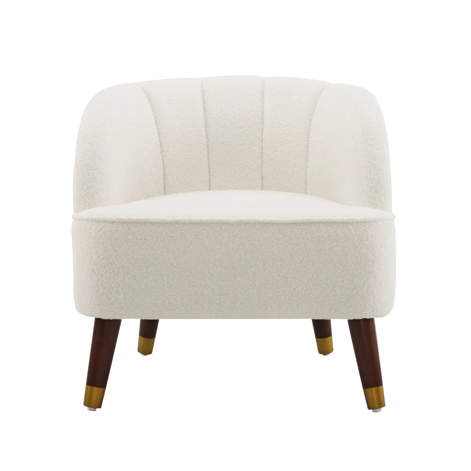 Elegant Upholstered Barrel Accent Chair With Wooden Legs - White Boucle