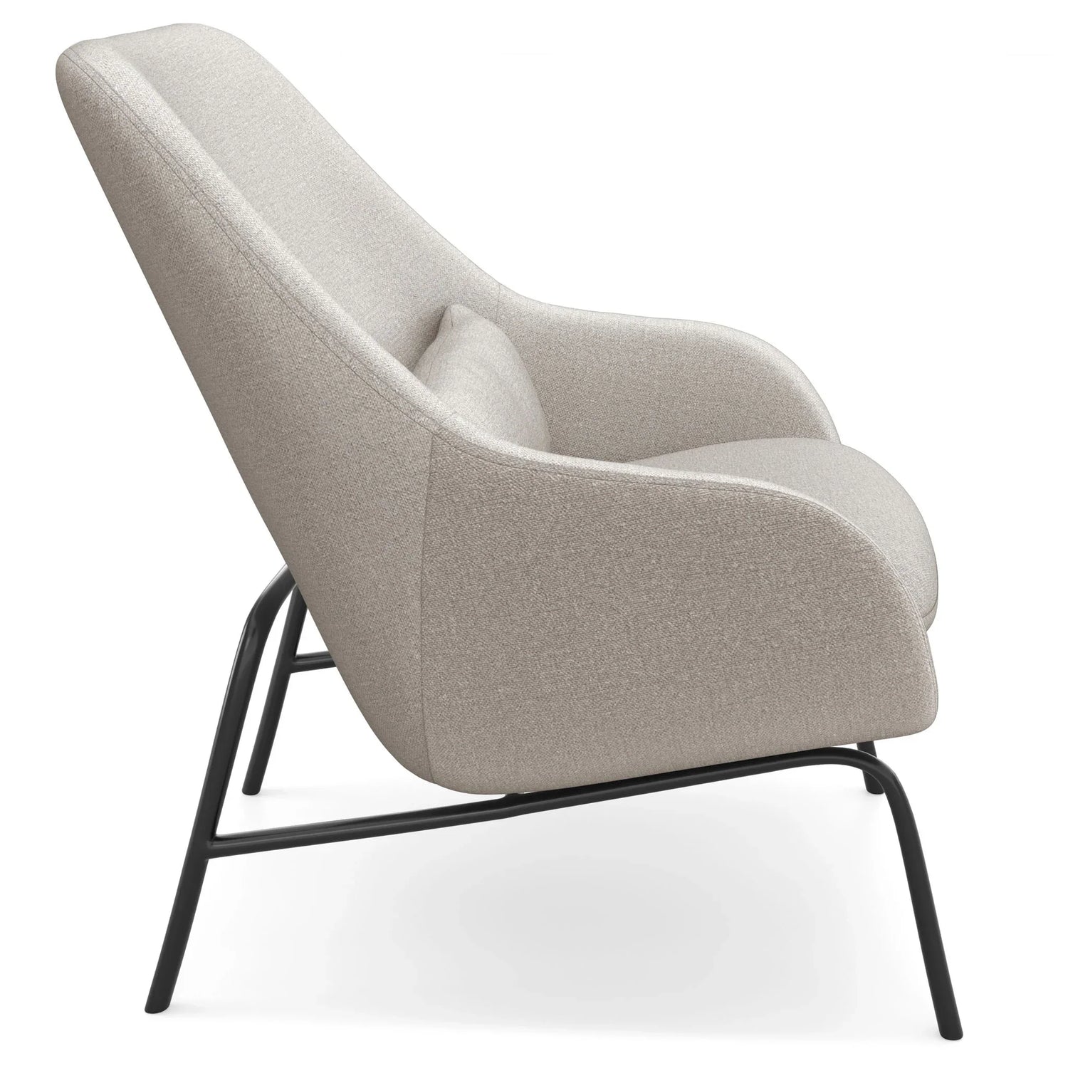 Hand built from a blend of solid wood structure, foam and polyester fiber batting, the Elmont pairs soft, textured upholstery with a slim black powder-coated metal base for contrast and stability. Thoughtful construction and a compact footprint make it an easy focal point for smaller rooms or a refined complement to a sectional or sofa.