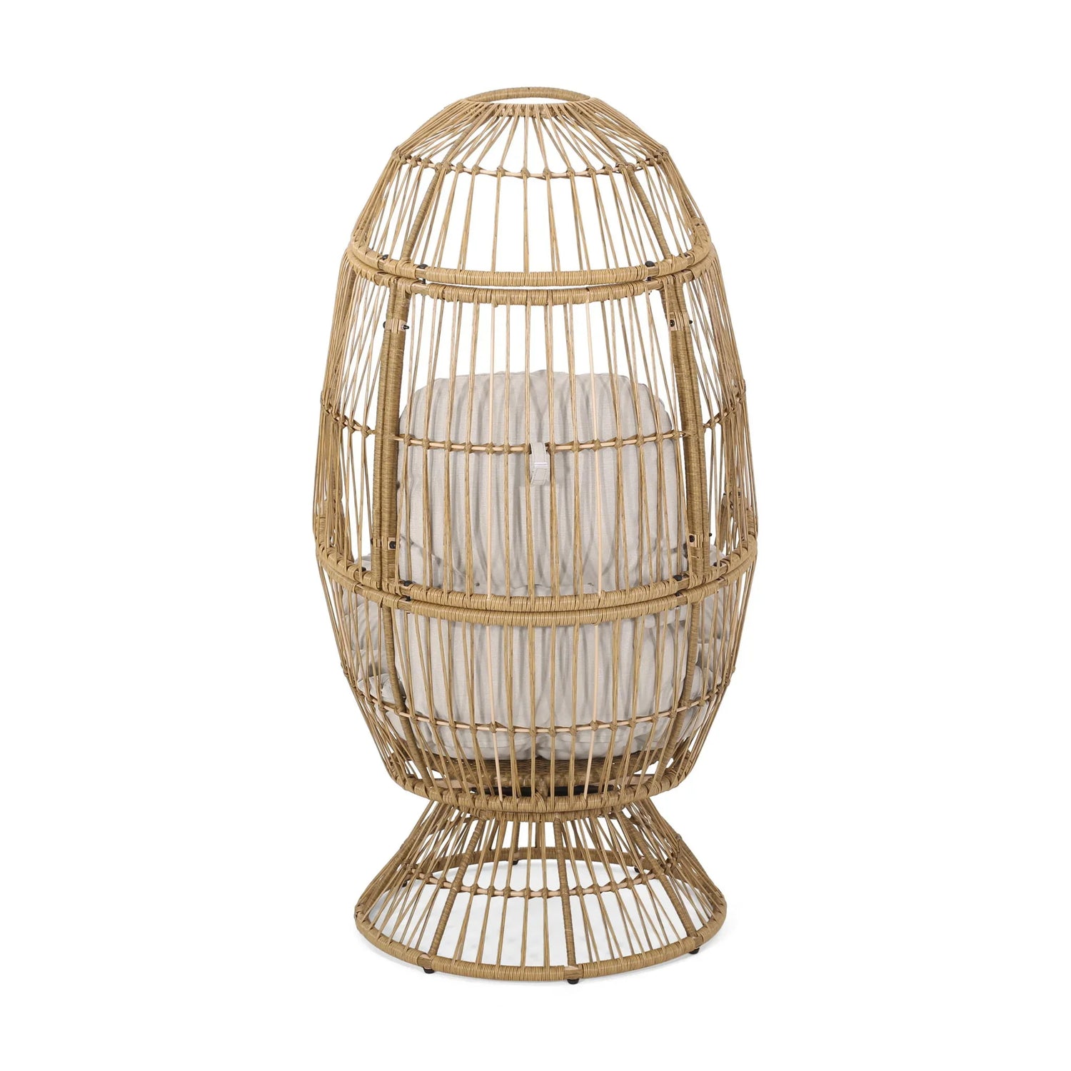 Patio Swivel Basket Egg Chair With Cushion - Natural