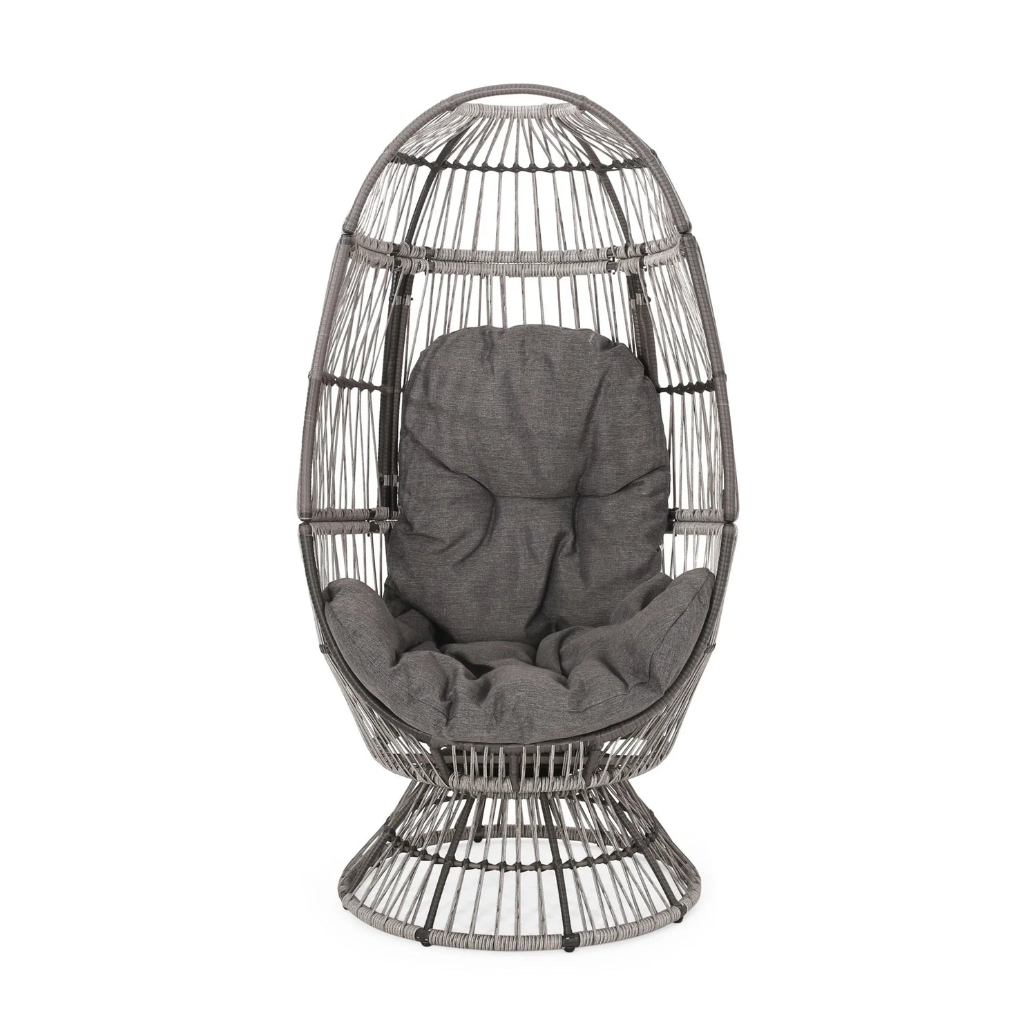 Berkshire - Outdoor Wicker Swivel Egg Chair With Water Resistant Cushions - Gray