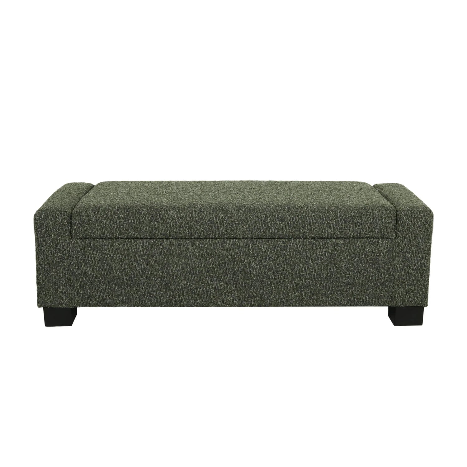 Textured Fabric Ottoman Bench With Hinged Lid - Blackish Green