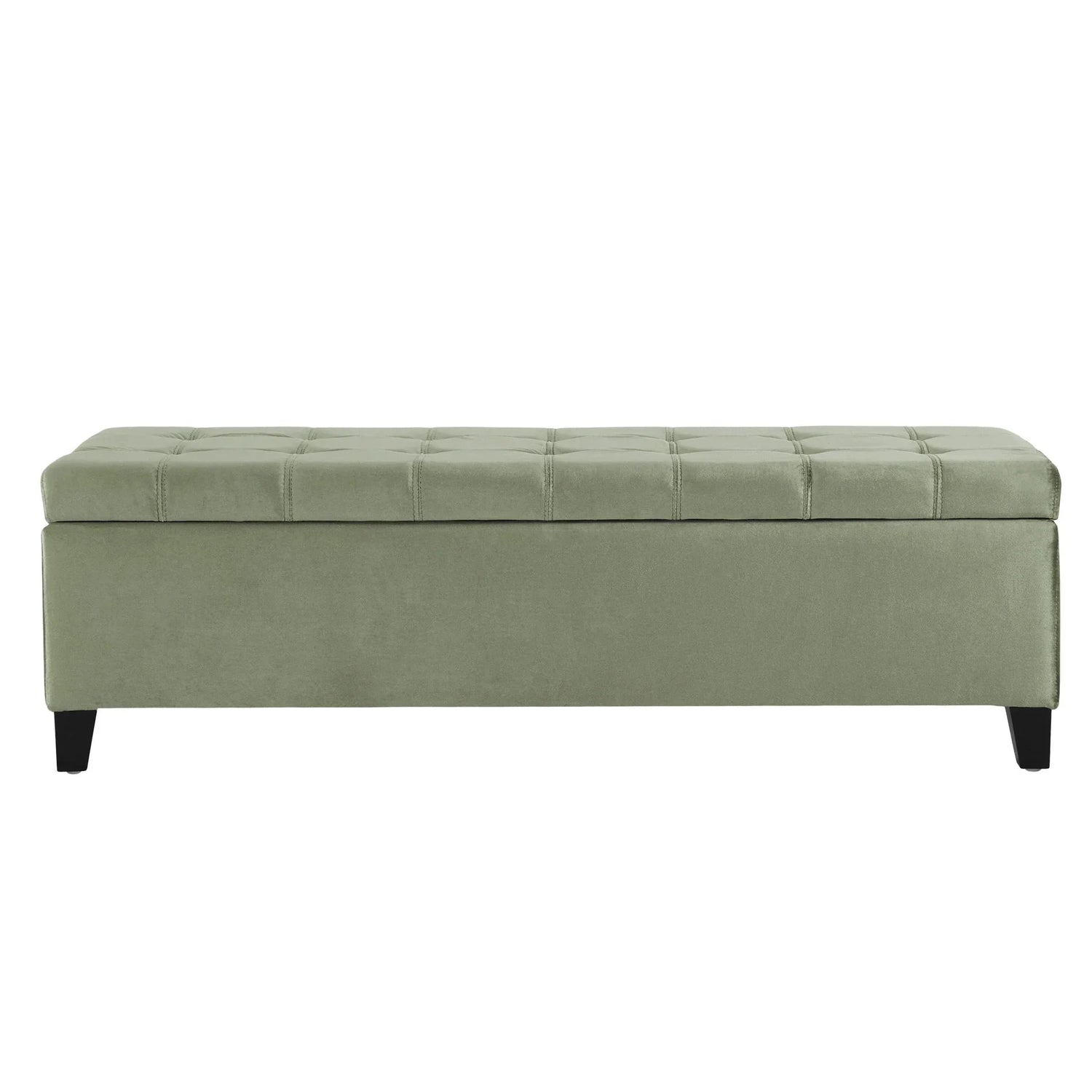 Wendover - Elegant Velvet Tufted Storage Bench With Lift Up Top And Birch Wood Legs - Pale Green