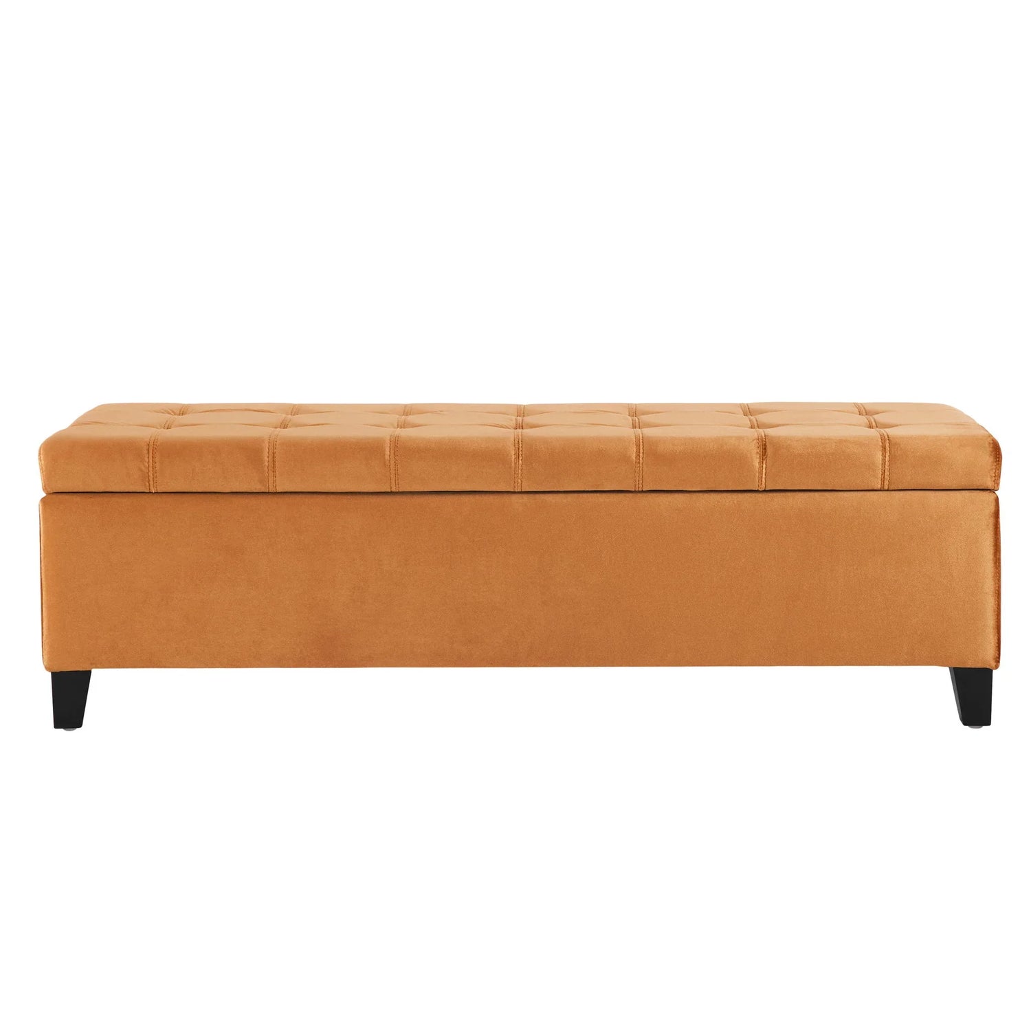 Wendover - Elegant Velvet Tufted Storage Bench With Lift Up Top And Birch Wood Legs - Ochre
