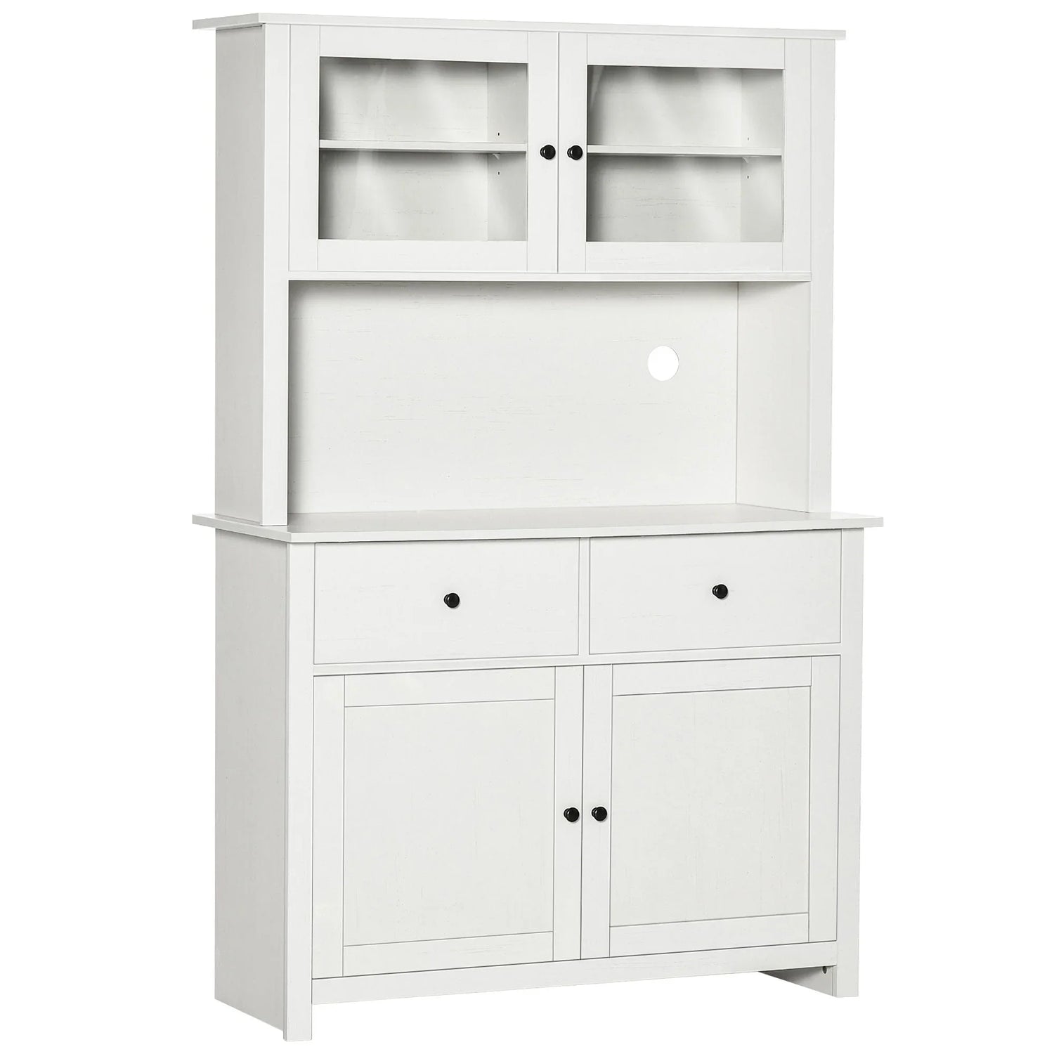 Homcom - 63.5" Kitchen Buffet With Hutch, Pantry Storage Cabinet With 4 Shelves, Drawers, Framed Glass Doors, Open Microwave Countertop - Antique White