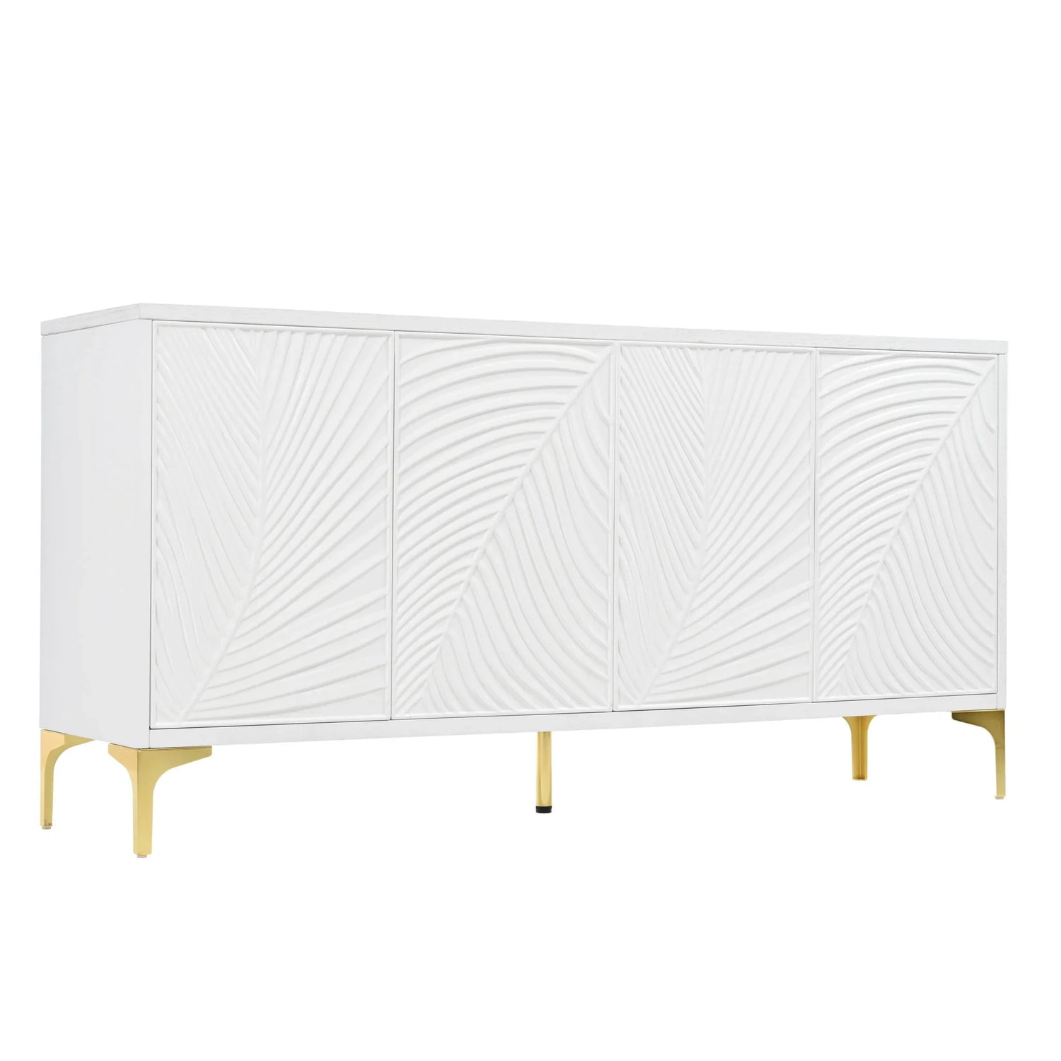 Modern 4 Door Sideboard With Creative Carved Surface And Adjustable Shelves - White is backordered and will ship as soon as it is back in stock.