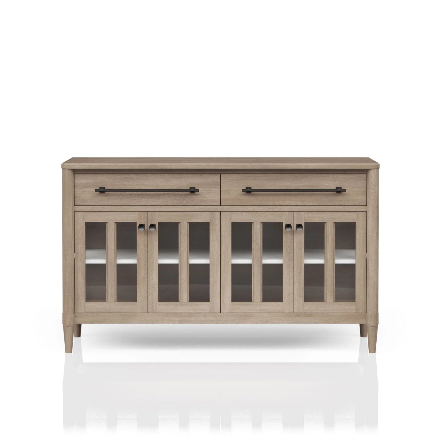 Designed for dining rooms and entertaining spaces, the Power Ready Buffet with Glass Cabinet Doors in Sand brings polished, everyday function to the modern home. Its warm sand finish — a light brown with subtle goldenrod undertones — fits with coastal, transitional, and Scandinavian-inspired interiors. Use it as a server for family dinners, a media credenza in a living room, or a display console where glass-front storage keeps favorite pieces visible and protected.