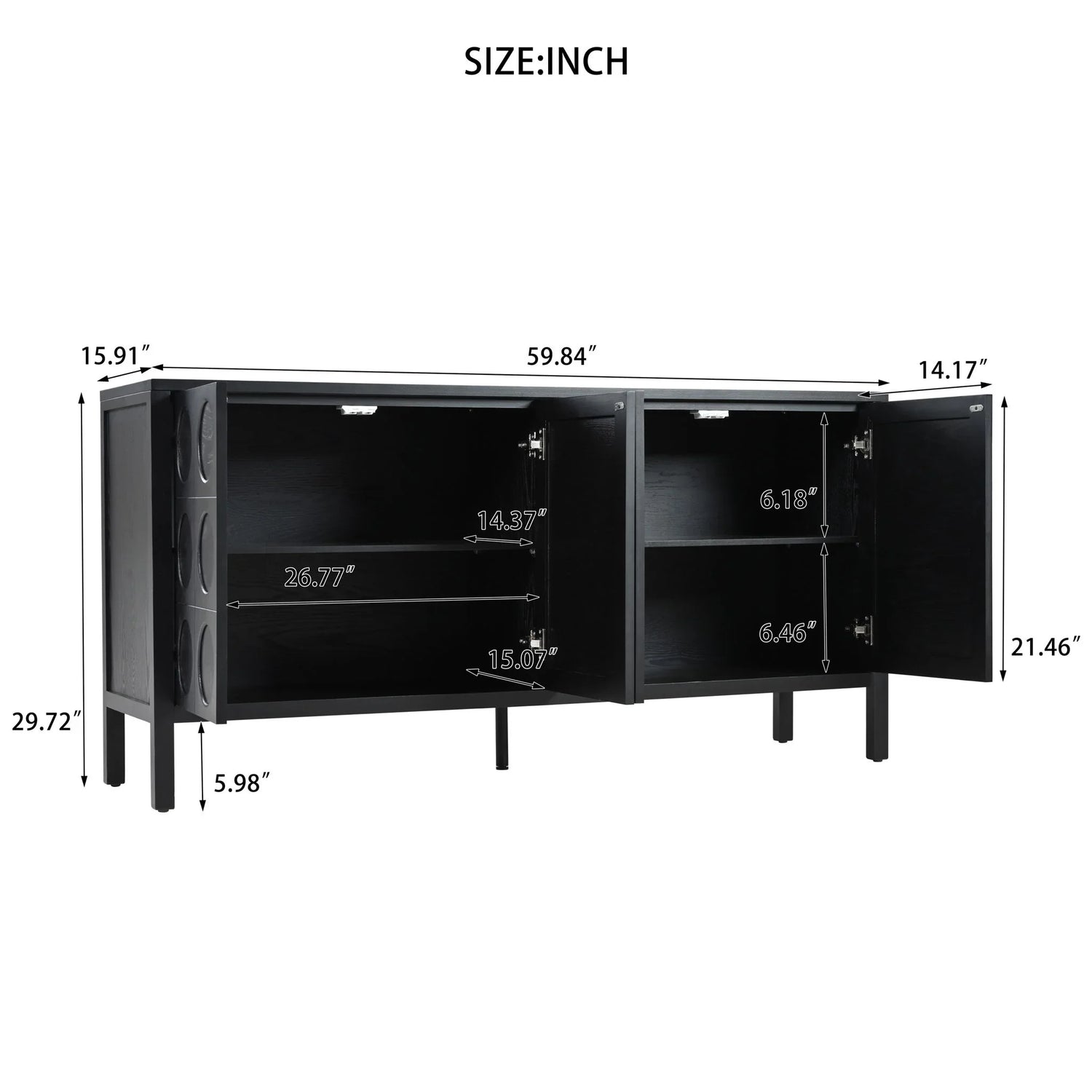 Stylish Storage Cabinet Sideboard With Unique Geometric Circle Door Design - Black