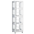 Configuration: 4 tiers (vertical tower) with rotating central shaft and rolling casters for 360° mobility.