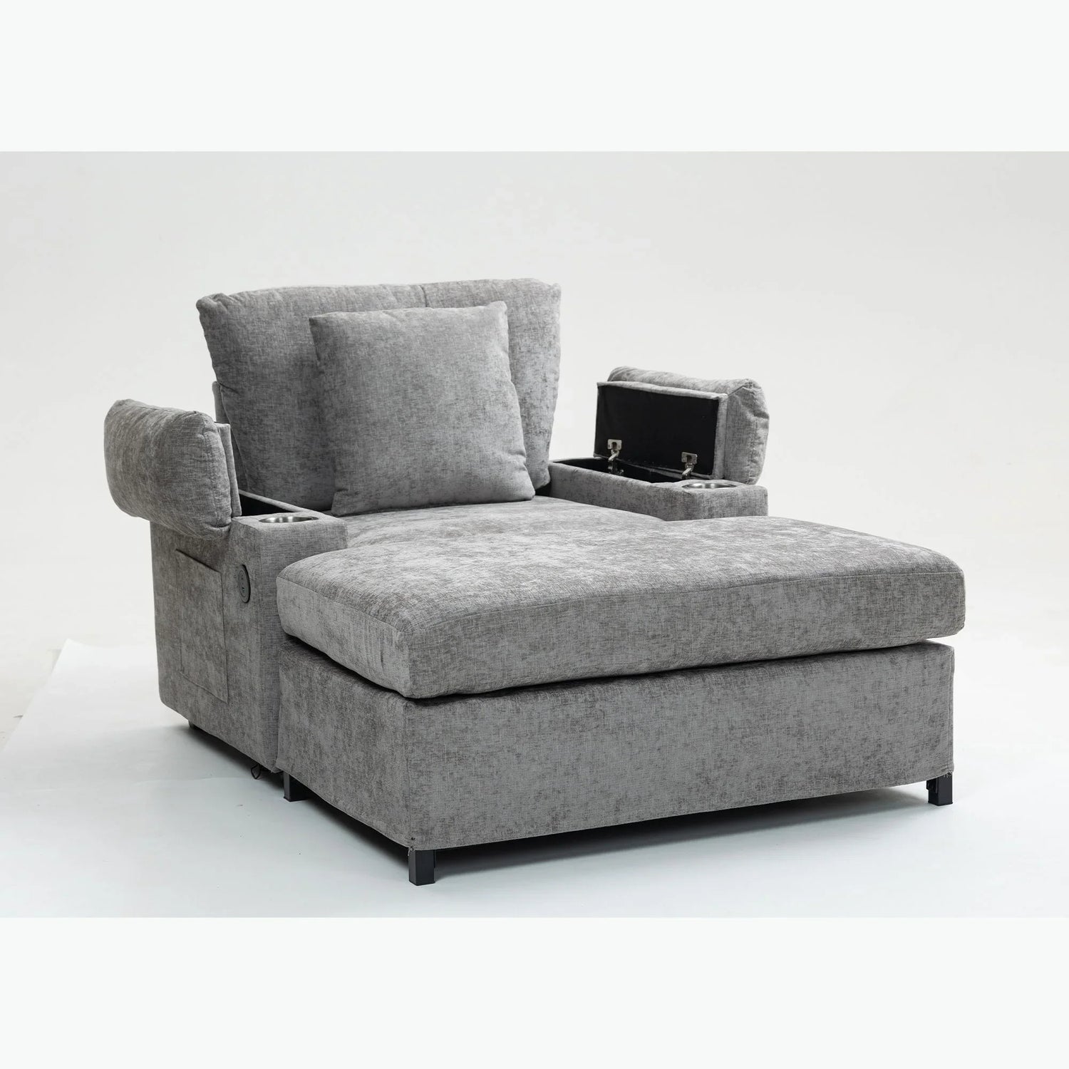 Chenille Fabric Sofa Bed With Cupholders And USB Charging Ports Chair For Living Room