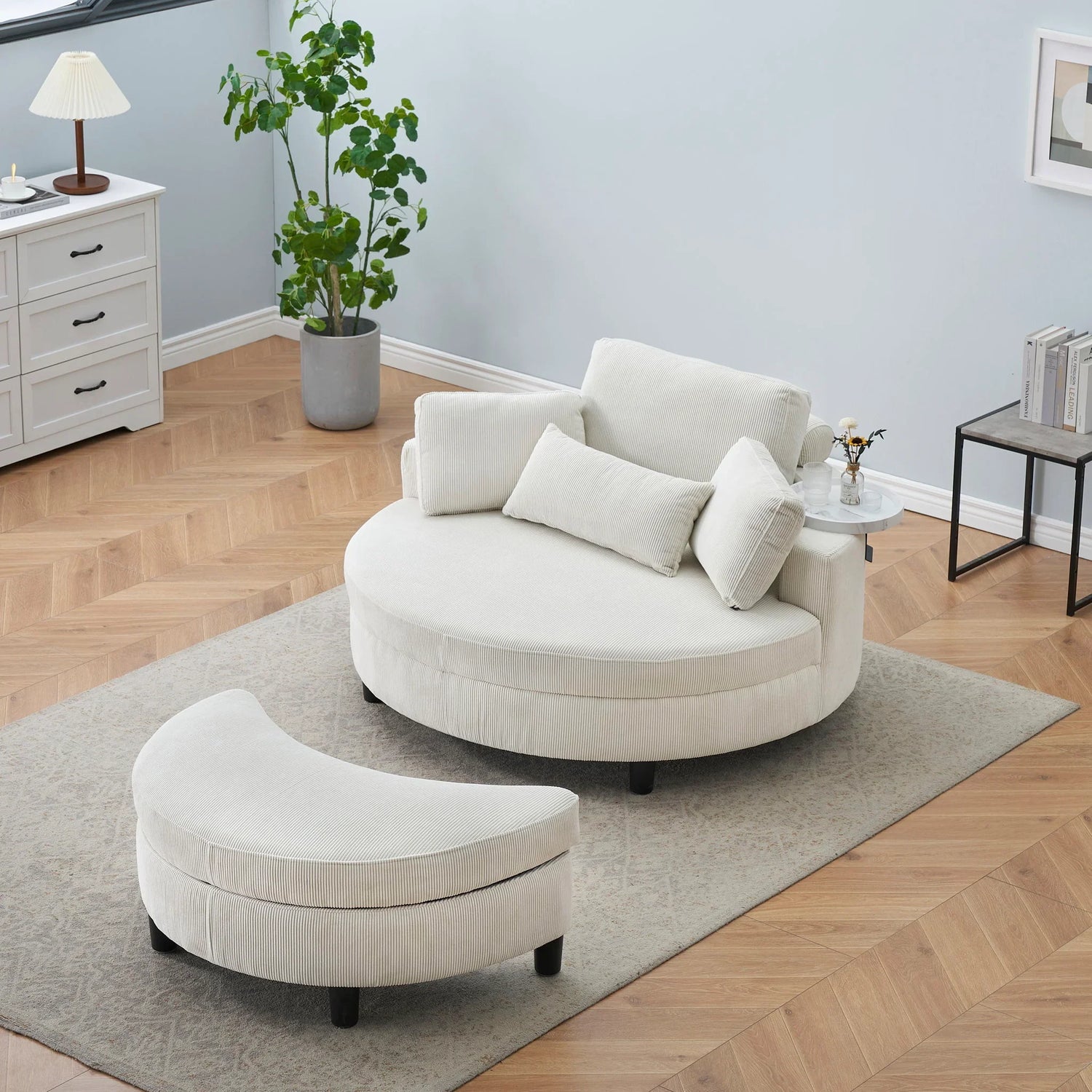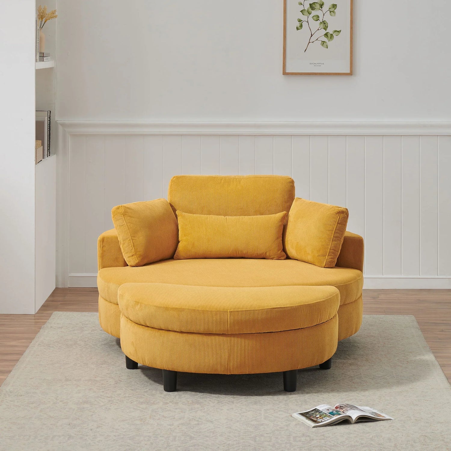 - Comfort-forward design: Deep, rounded seat and soft corduroy upholstery deliver a relaxed, cushioned feel for lounging or short naps.