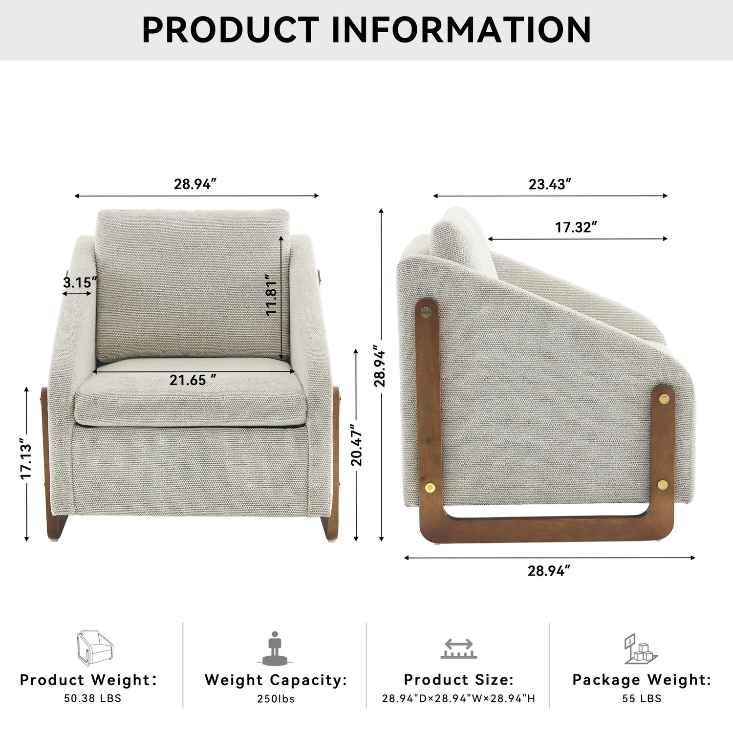 Modern Upholstered Armchair With Wooden Side Frame, Cushioned Fabric Accent Chair - Beige