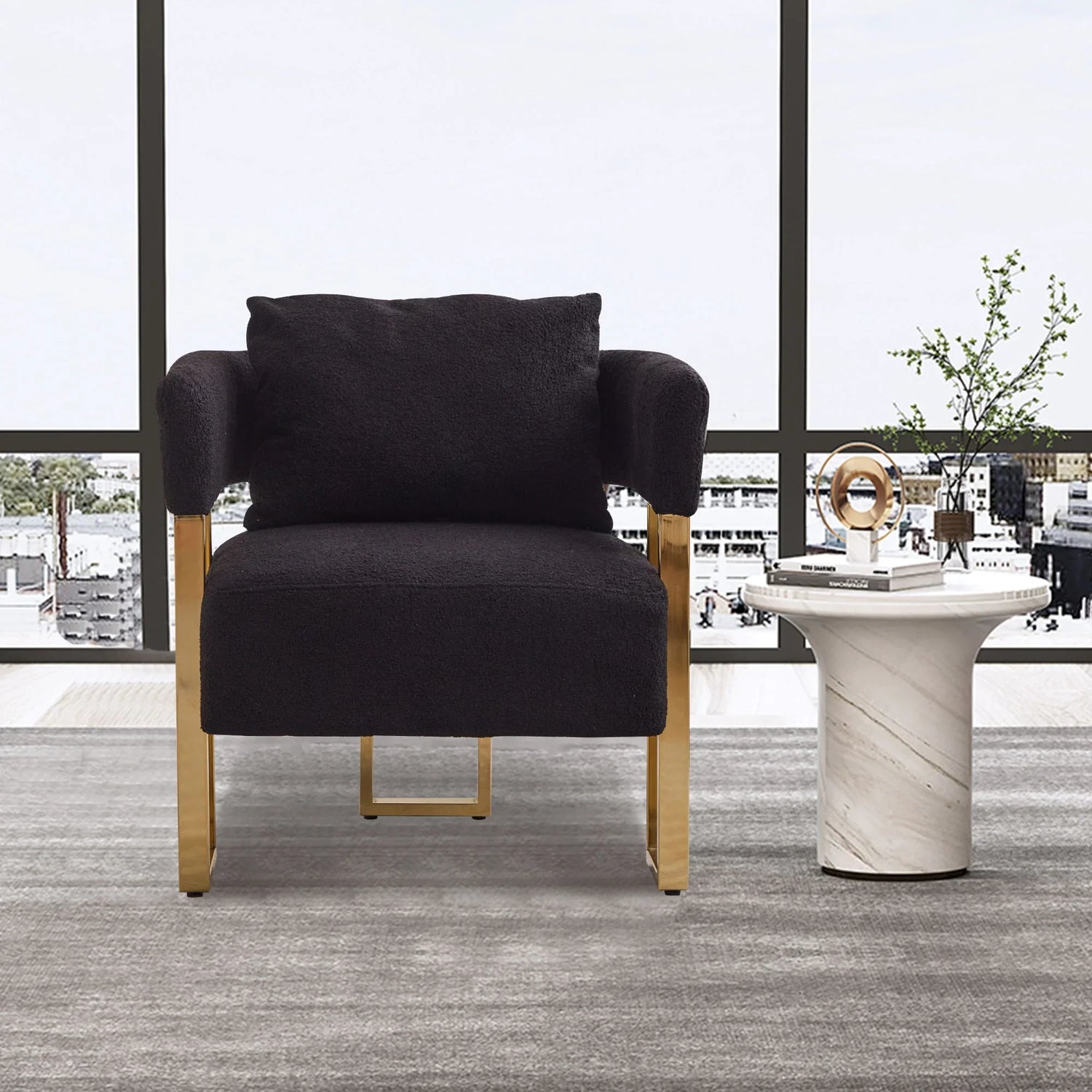 Modern Decorative Chair, Living Room Side Chair With Gold Metal Legs, No Wheels, Suitable For Dressing Area, Reception Room, Office, Teddy Fleece Upholstered Metal Foot Sofa 1 Piece - Black