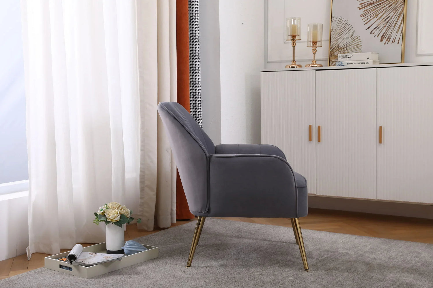 - Modern Design with Golden Legs: Subtly curved arms, golden legs, and exquisite cutting and stitching details make this accent chair and ottoman set a stylish choice for modern homes.