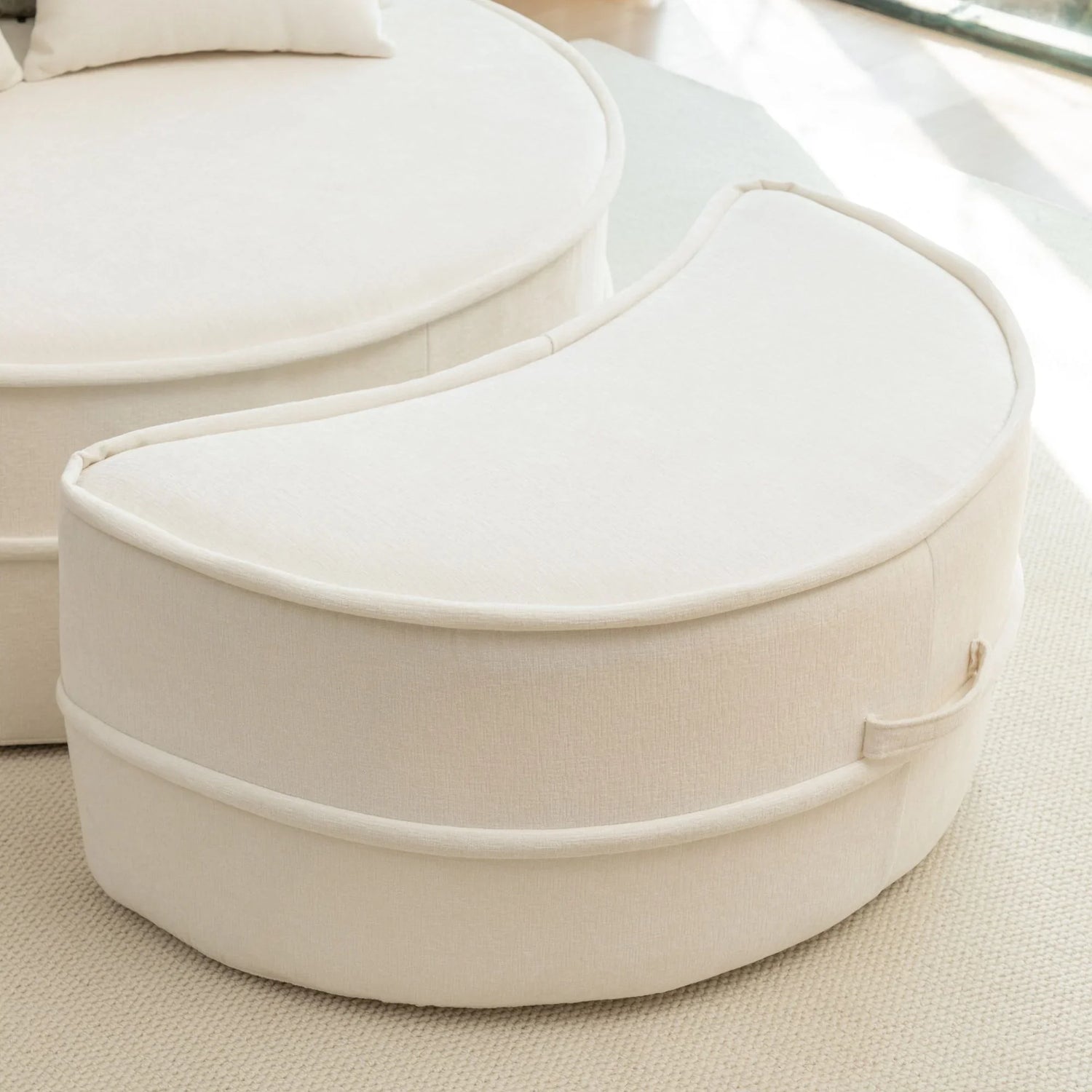 Modern Oversized Round Barrel Accent Chair With Ottoman