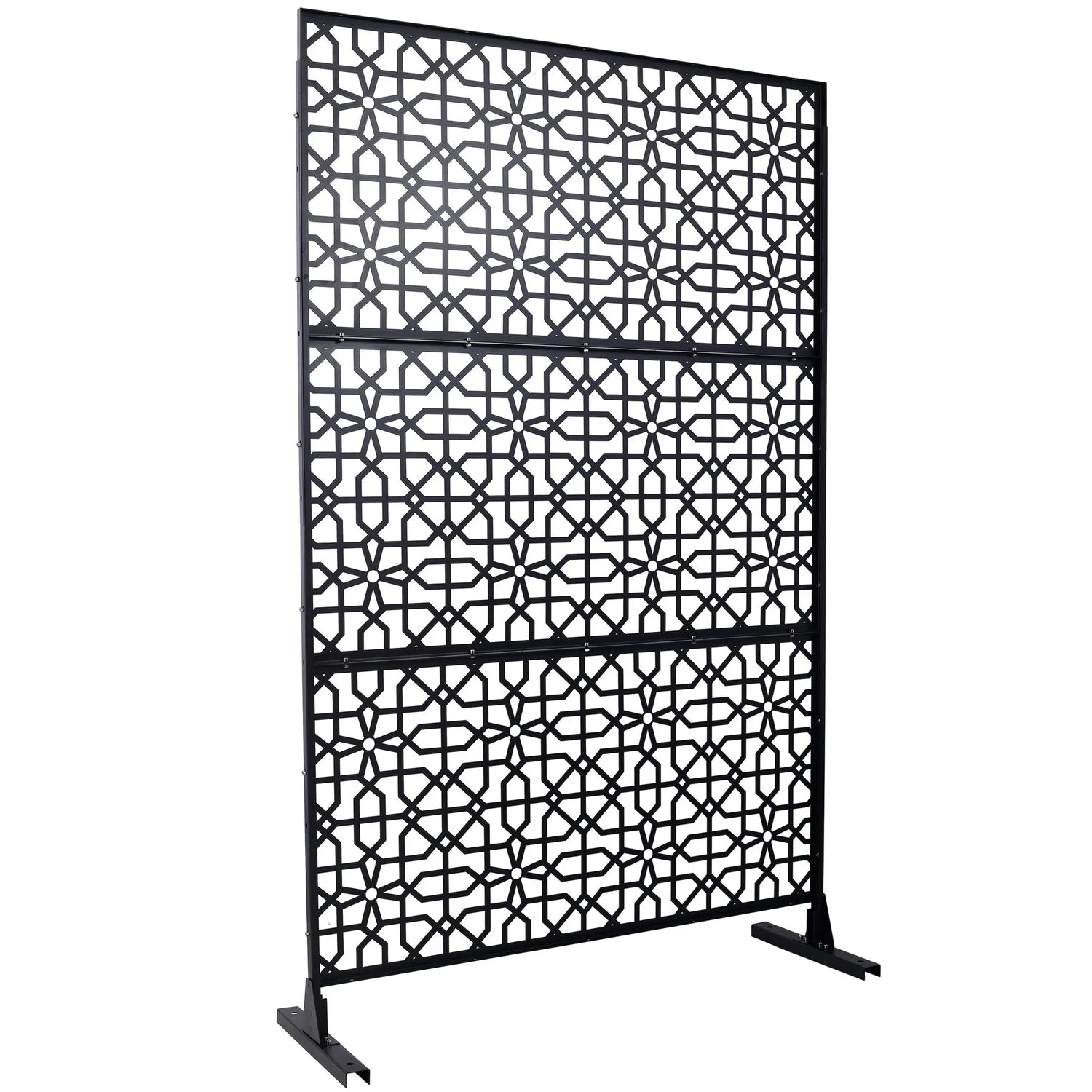 Outdoor & Indoor Privacy Screen Metal Privacy Screen Freestanding Decorative Privacy Screen Steel - Black