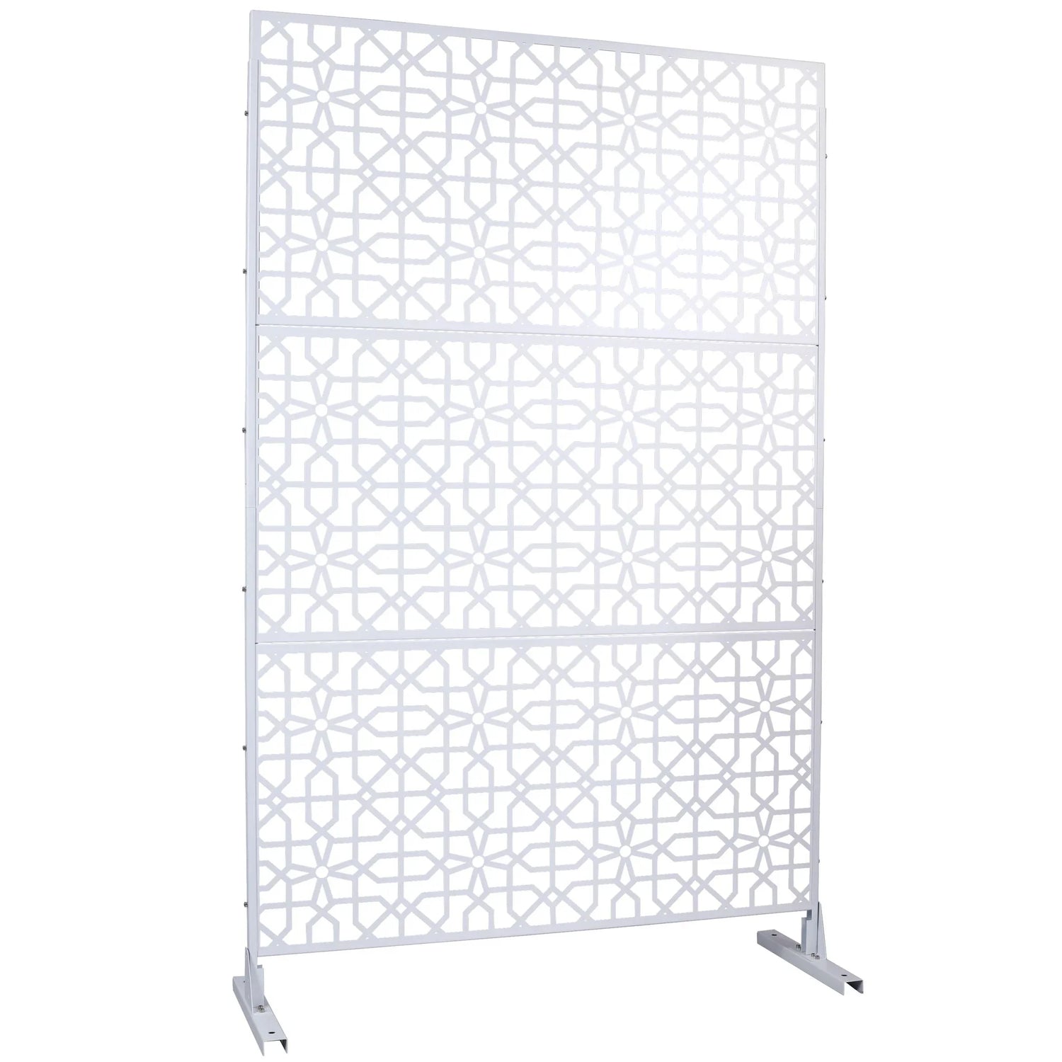 Outdoor & Indoor Metal Privacy Screen Freestanding Decorative Privacy Screen - White
