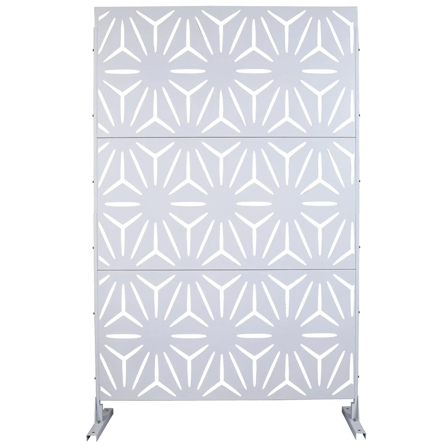 Outdoor & Indoor Metal Privacy Screen, Freestanding Decorative Panels For Deck, Balcony, Patio, Lawn, And Garden - White