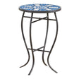 Outdoor Round Side Table With Mosaic Style Top And Curved Iron Legs - Blue / Matte Black