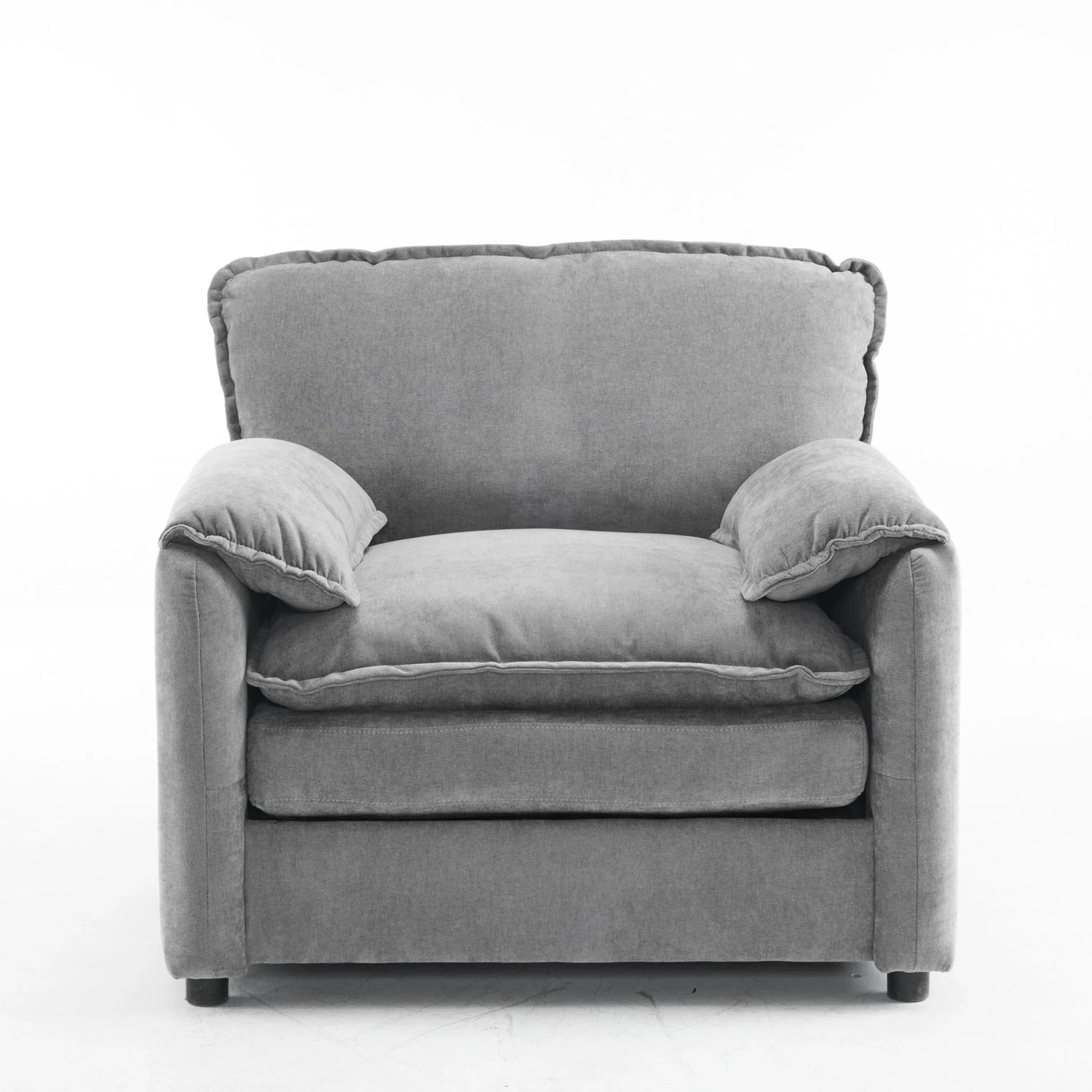 Oversized Reading Armchair With Thick Cushions, High Back Support - Gray