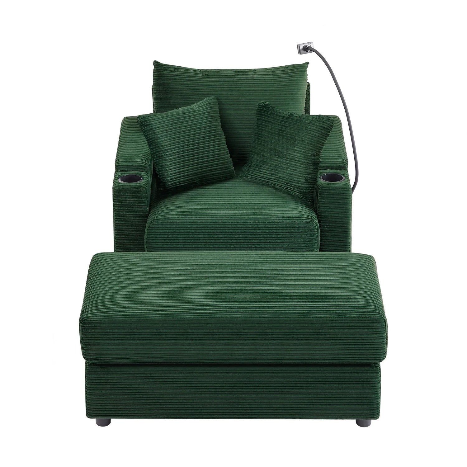Single Sofa Couch With Storage Space, Movable Ottoman, USB Ports, Cup Holders, Phone Holder - Dark Green is backordered and will ship as soon as it is back in stock.