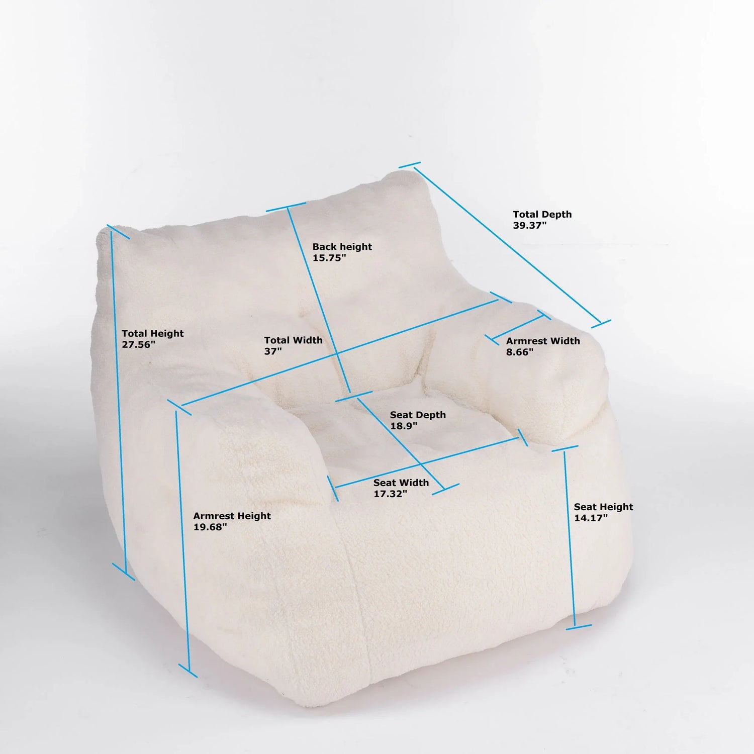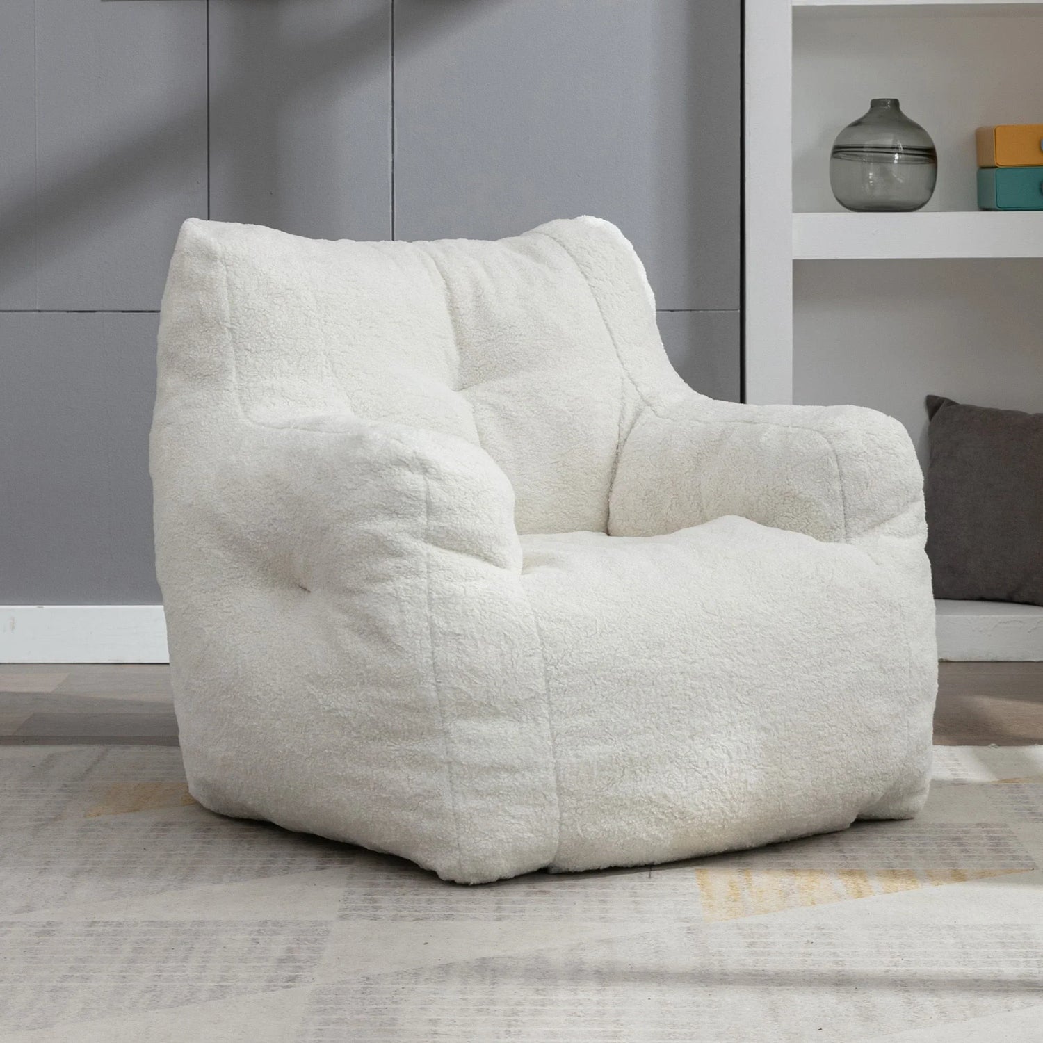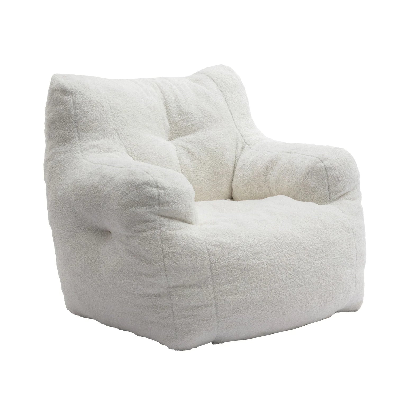 Built with an ultra-soft teddy‑style exterior and a memory‑foam bead fill, the chair balances sink‑in comfort with enough support to sit upright. Tufted detailing and generous arm contours create subtle shaping that reads modern yet approachable. No assembly required—simply unpack and sink in.