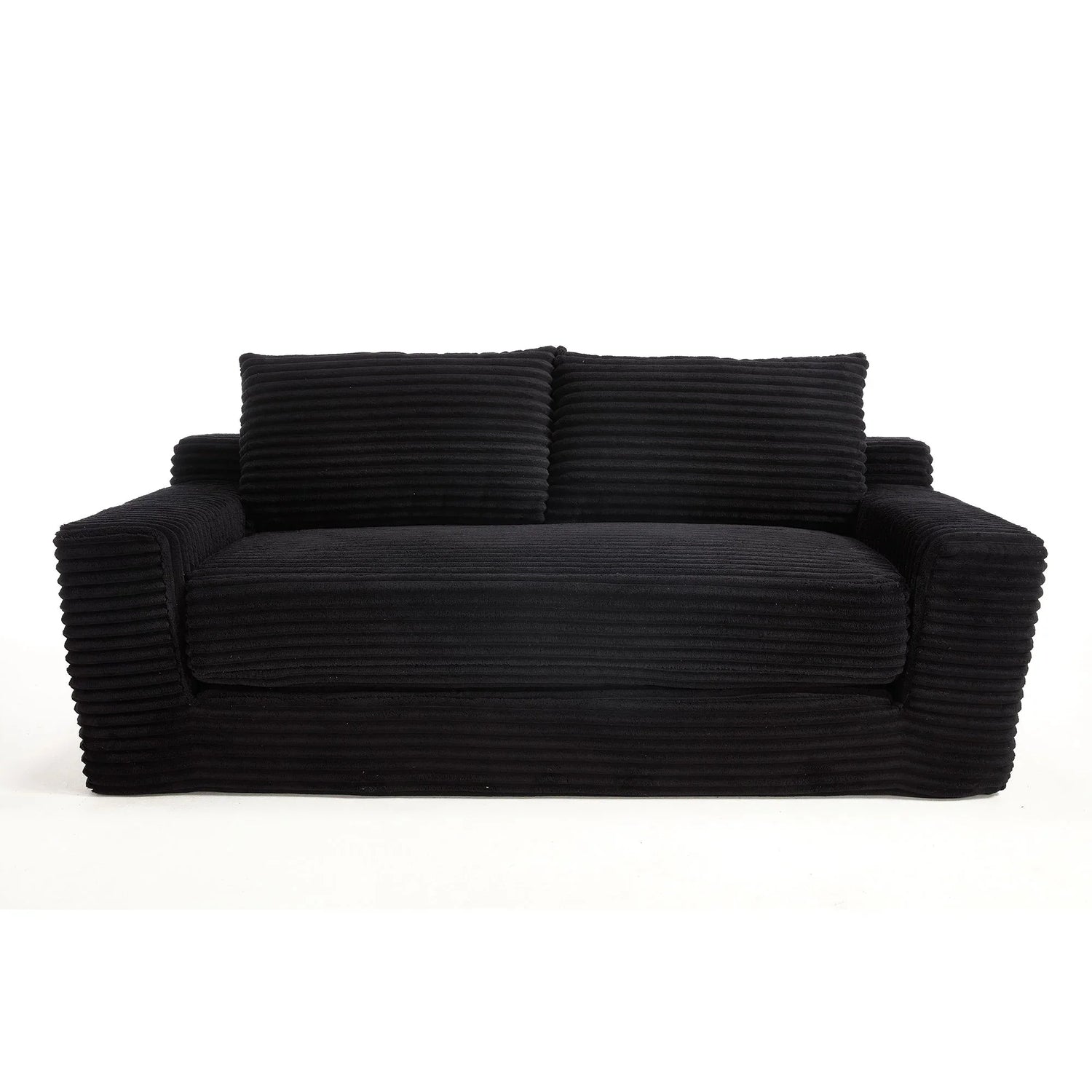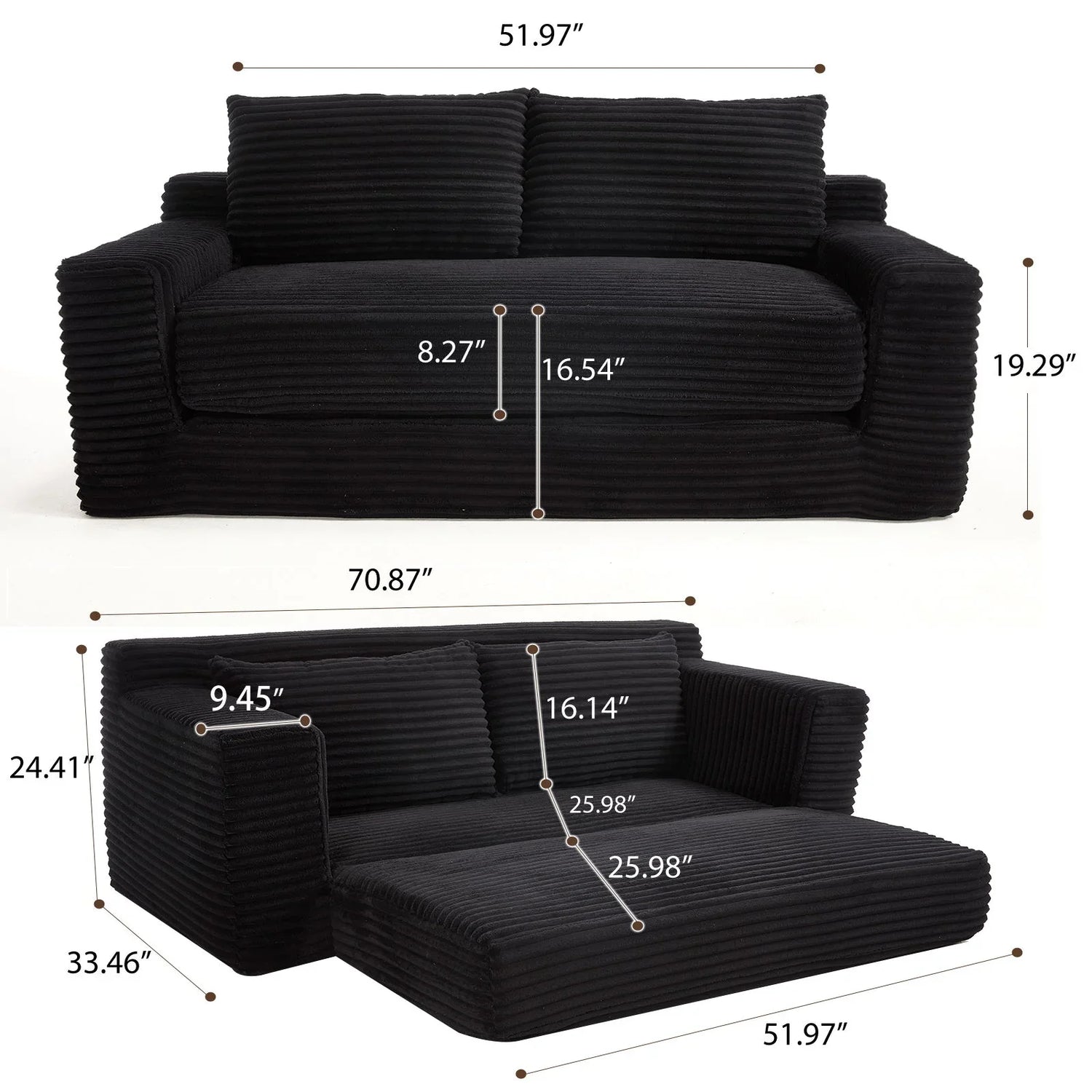 Loveseat Sofa Bed With Memory Foam & Steel Frame Convertible 2 In 1 Design Corduroy No Assembly - Black