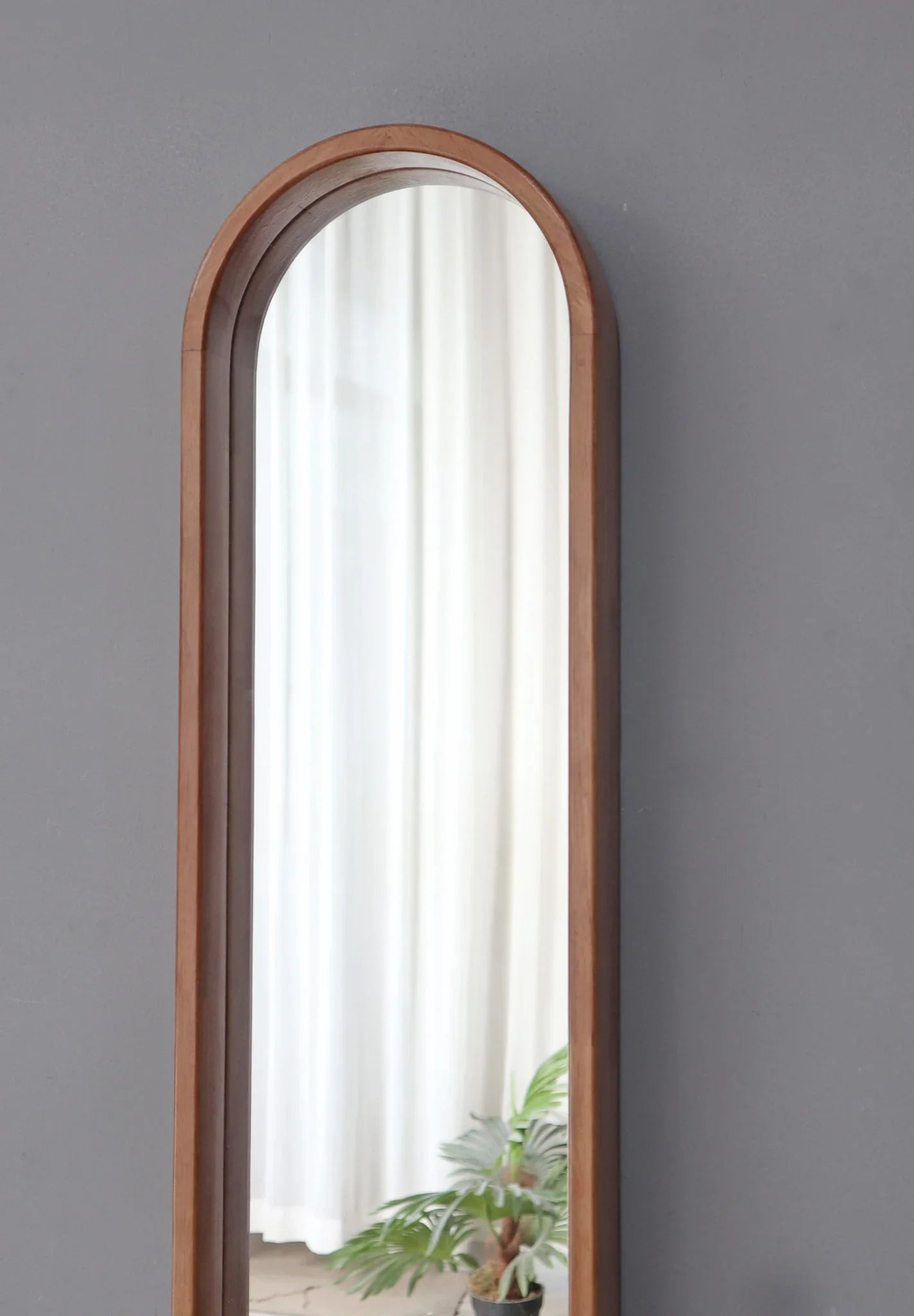 Crafted with a durable rubber frame finished in natural brown, the mirror pairs tactile warmth with low‑key durability for everyday use. The slim bezel and full‑length glass keep the look simple and refined—an easy way to add depth and light without overwhelming a small room. Note: natural materials and screen settings may cause slight color variation.