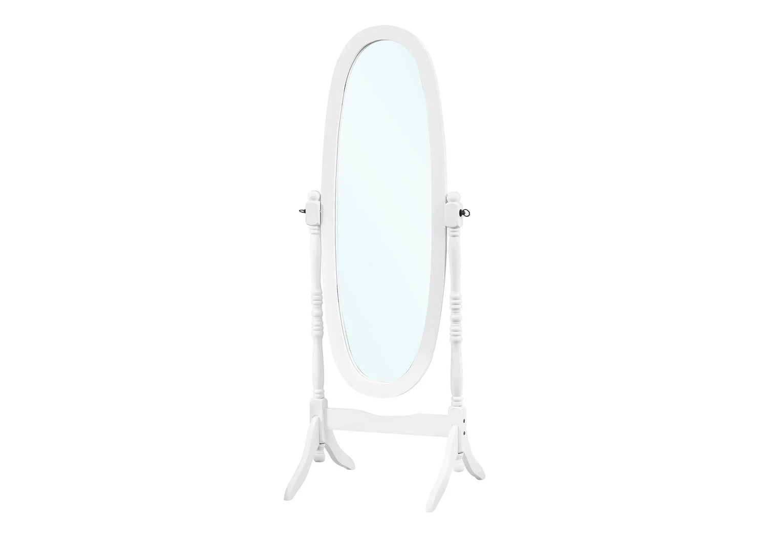 • Oval-Shaped Glass Surface: This wooden cheval mirror features a large oval-shaped glass surface, providing a full-length view with ease. Its swivel motion allows for easy adjustment to suit your viewing preference.