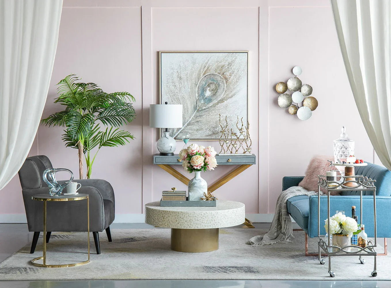 Layer this piece above a narrow console table or a low sofa to create a sculptural vignette. Pair with soft textiles and natural elements — linen, rattan, or live plants — to balance metallic tones. For a cohesive look, echo the gold finish in small accents like trays or lamp bases and pick up the white tone in pillows or ceramics.