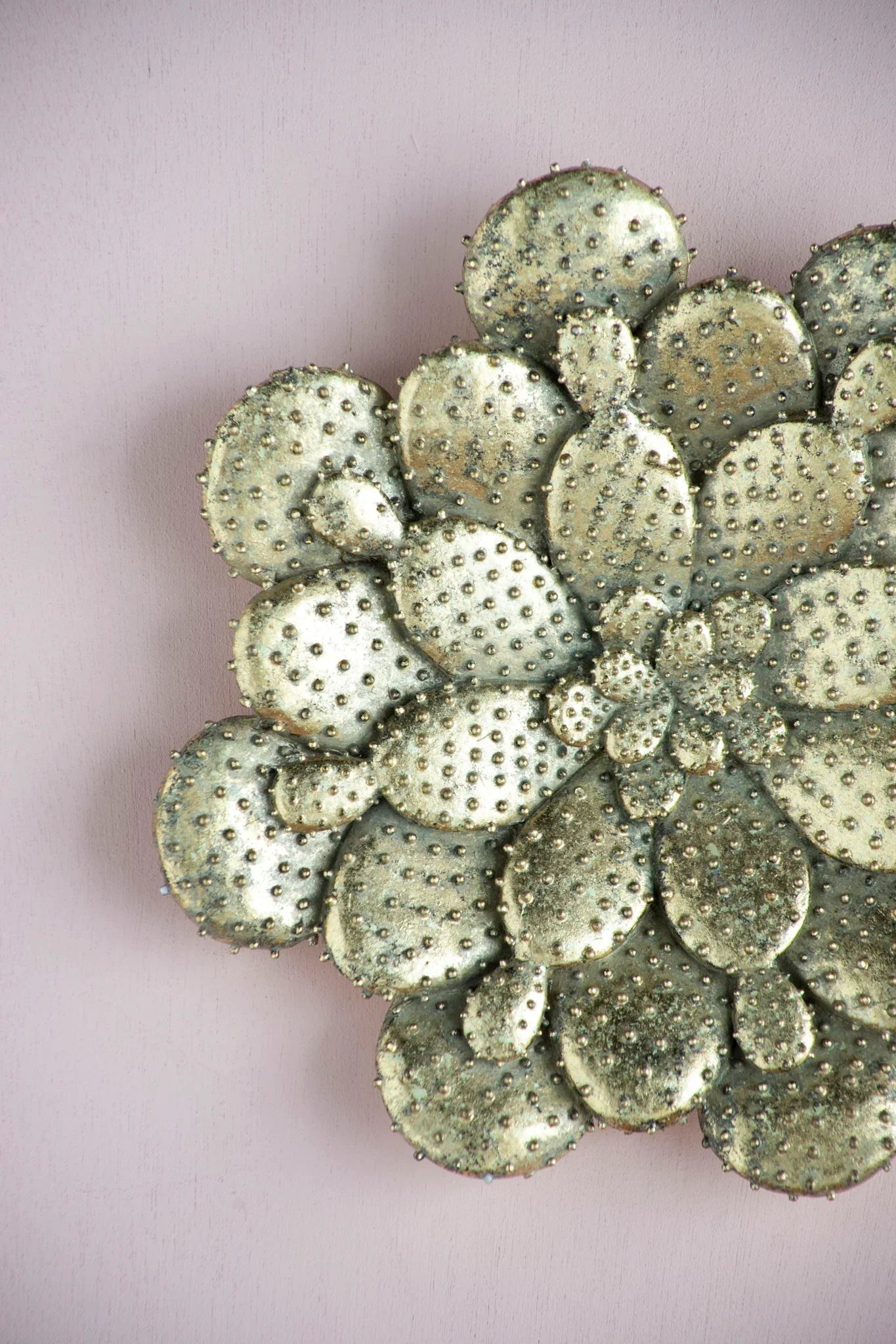 Wipe gently with a soft, dry cloth to remove dust. Avoid abrasive cleaners or prolonged exposure to direct moisture; occasional gentle dusting keeps the metallic finish bright. For textured areas, use a soft-bristled brush to dislodge dust from crevices.