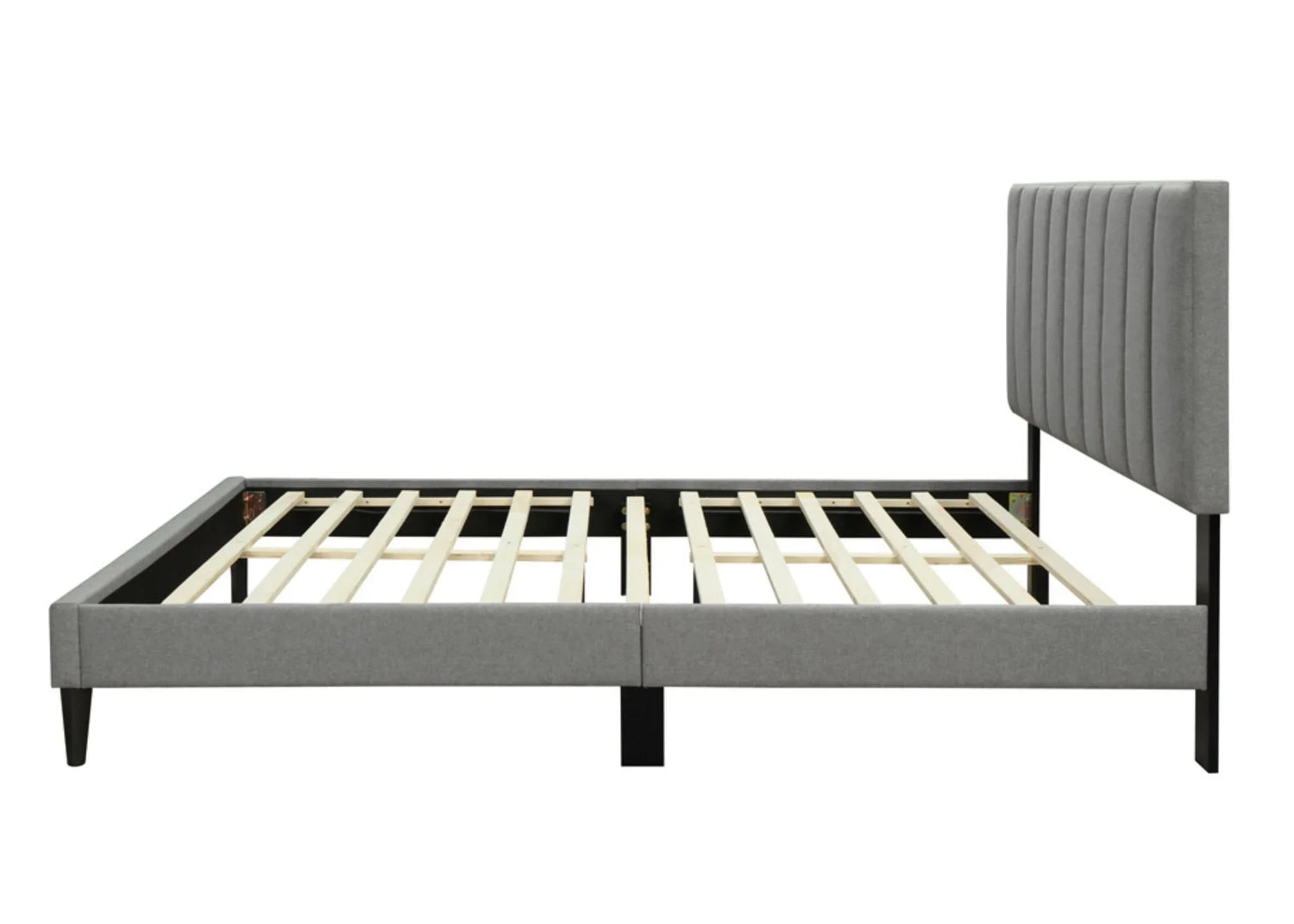 - Modern, durable styling: Channel-tufted headboard and fabric upholstery give a tailored, low-maintenance appearance.