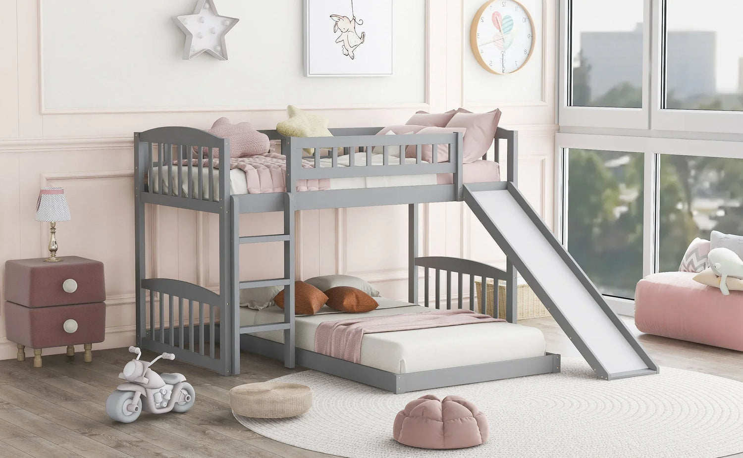 Twin Over Twin Bunk Bed & Slide And Ladder - Gray