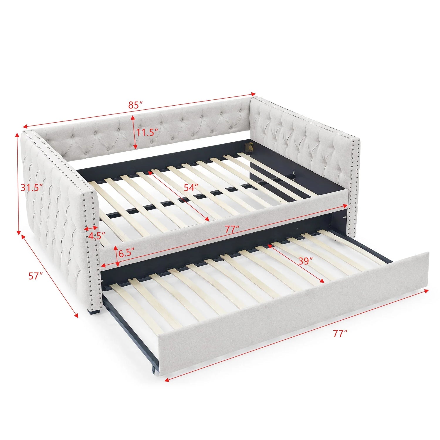 Inspired Upholstered Daybed With Trundle, Button Tufted
