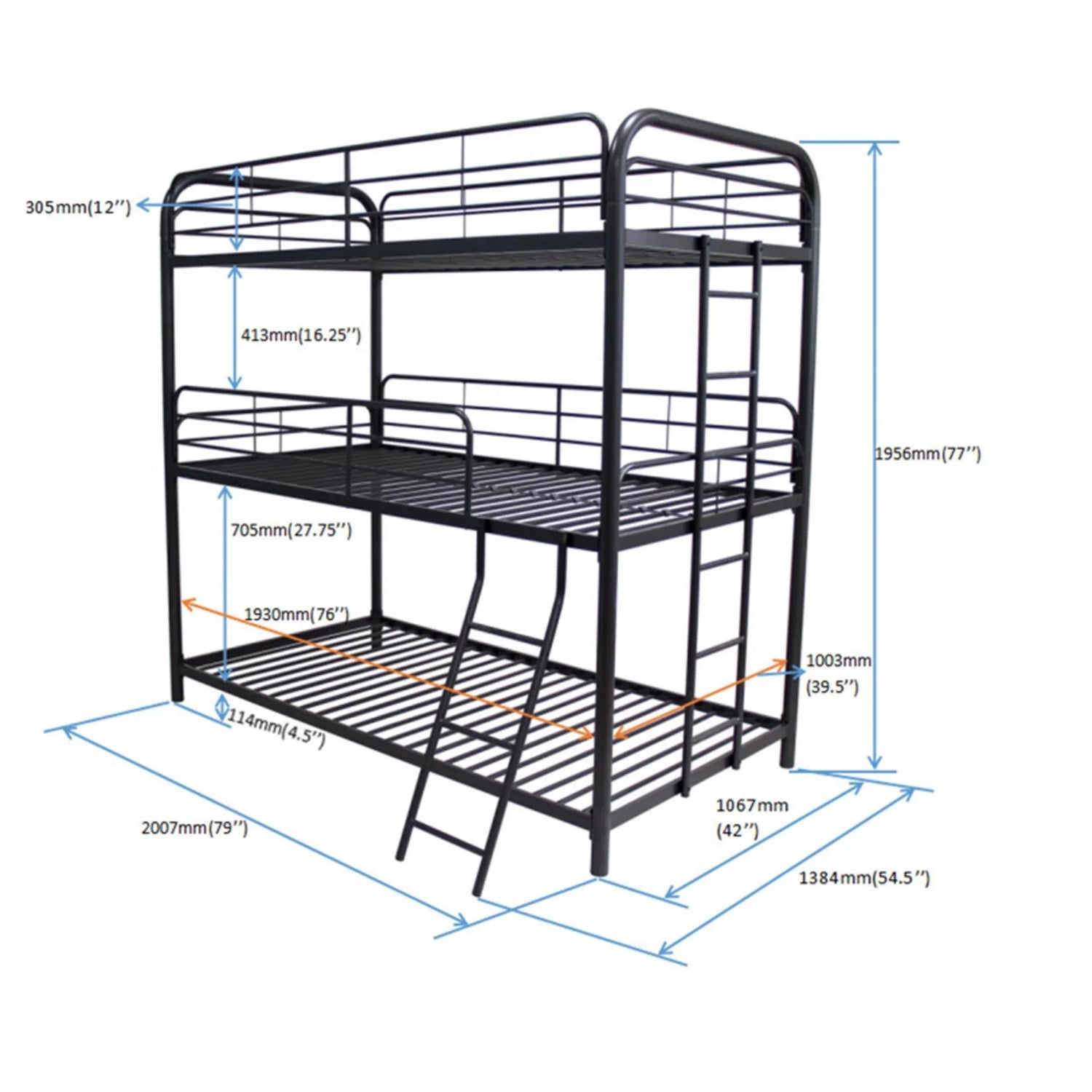 Triple Bunk Bed, Twin / Twin / Twin - Black